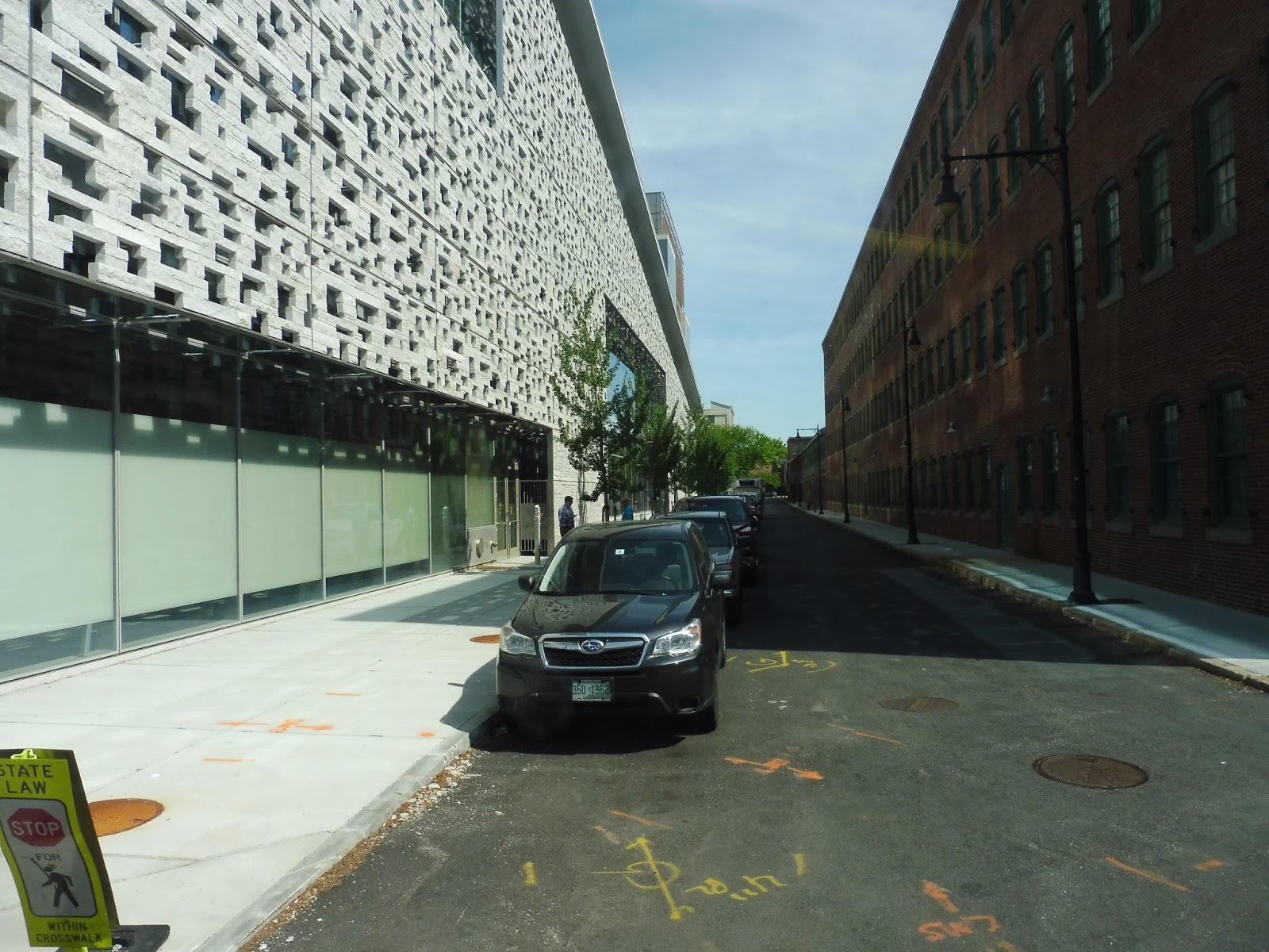 Leaving the North Station stop on Nashua Street, we curved around alongside a park and the Charles River, then turned onto Monsignor O’Brien Highway at Science Park Station. Running alongside the Green Line’s elevated structure, we went by the Museum of Science on the other side. Eventually, we turned onto Museum Way, a strange narrow street lined with apartment buildings and offices.