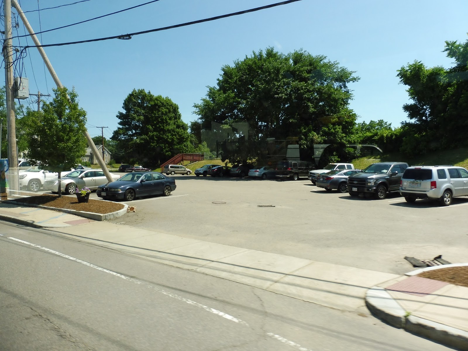 We now returned to Washington Street (diverting from the mapped route, I might add) and continued through a residential neighborhood. Eventually, though, we turned onto Bryant Street, passing by a few offices. This led to the Dedham Square Municipal Parking Lot, which is considered the start point of the route. We pulled in and laid over for a bit before setting off again.