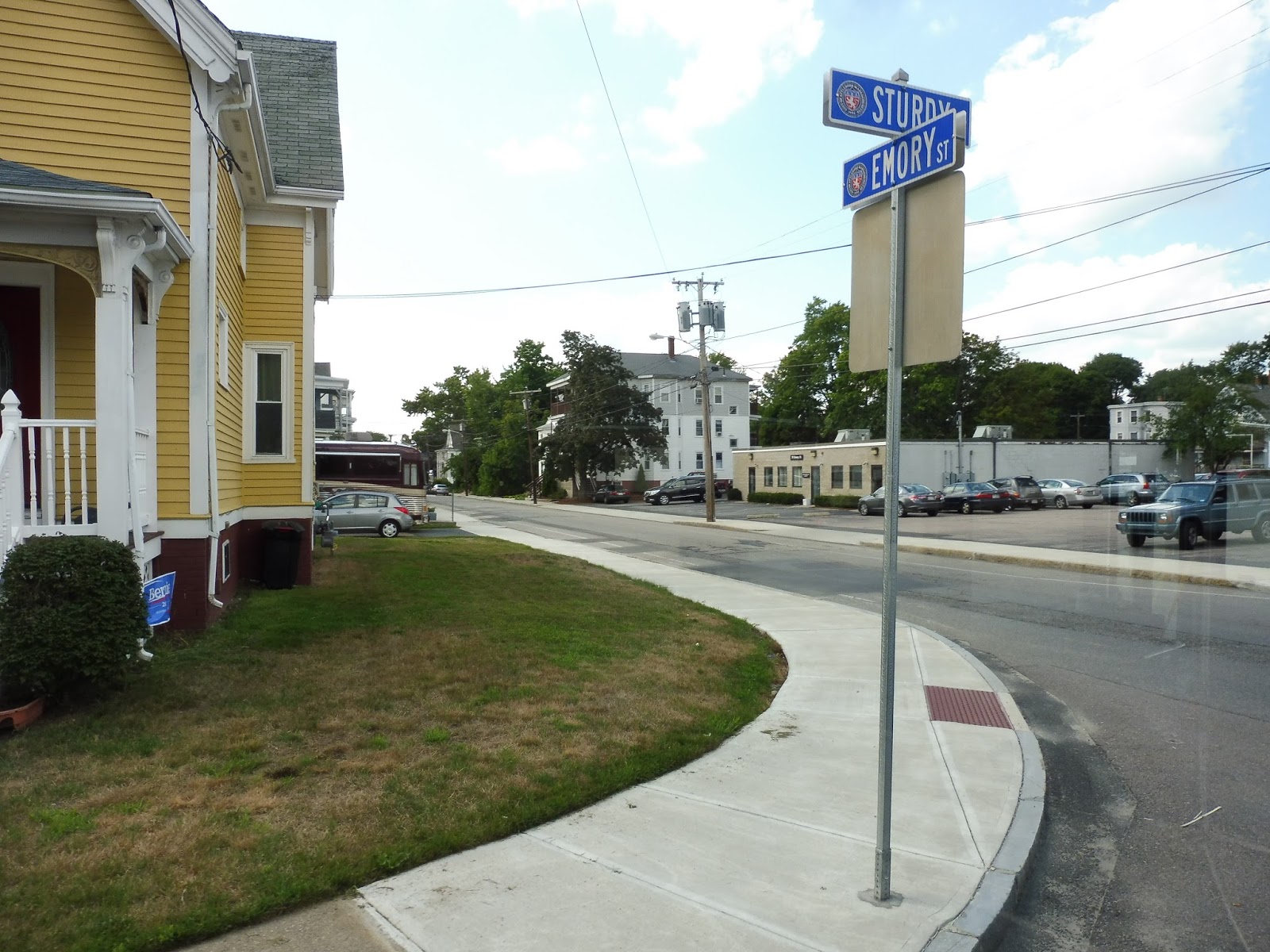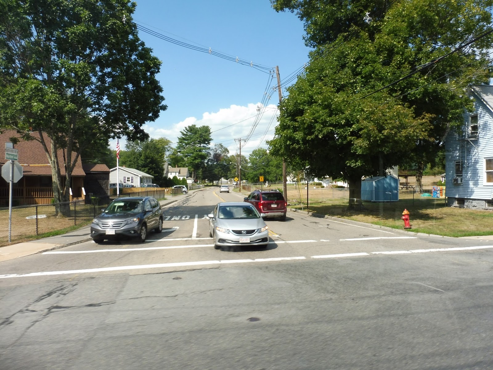The street’s name changed twice within a few seconds of each other: first to Norton Street, then to Worcester Street as we entered Taunton. There were consistent houses on either side now, which continued as the street name changed again, this time to Alfred Lord Boulevard, and Tremont Street soon after. We crossed over a small river, then went by the “major” stop of Norton Ave – it was literally the exact same scenery as everywhere else.