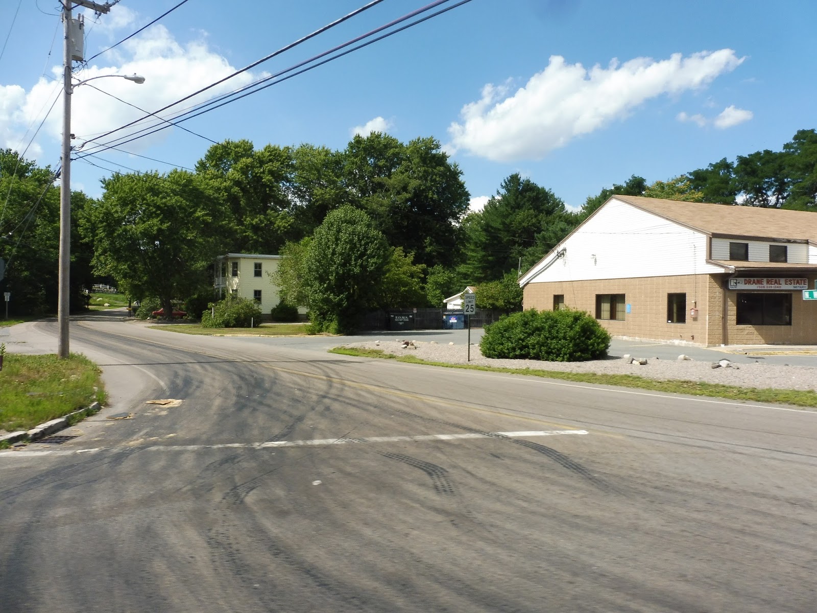 Aside from the houses, we also passed a church and a post office, and went under some telephone wires. As we entered Norton, the street became Old Colony Road, and was lined with businesses and industrial buildings. Next, it turned into West Main Street, and as we came alongside Chartley Pond, “Chartley Corners” was considered a major stop. There didn’t seem to be anything special about it…