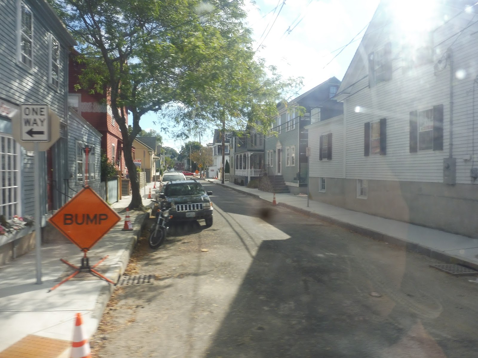 We headed up the narrow one-way 3rd Street, going by lots of dense, charming houses. It was a tight squeeze, but eventually 3rd Street finally became two-way, and a bit wider. We went under Route 138, then passed through a strange neighborhood with houses, apartments, and weird industrial backlots. We also went by a rather intimidating US Navy complex.