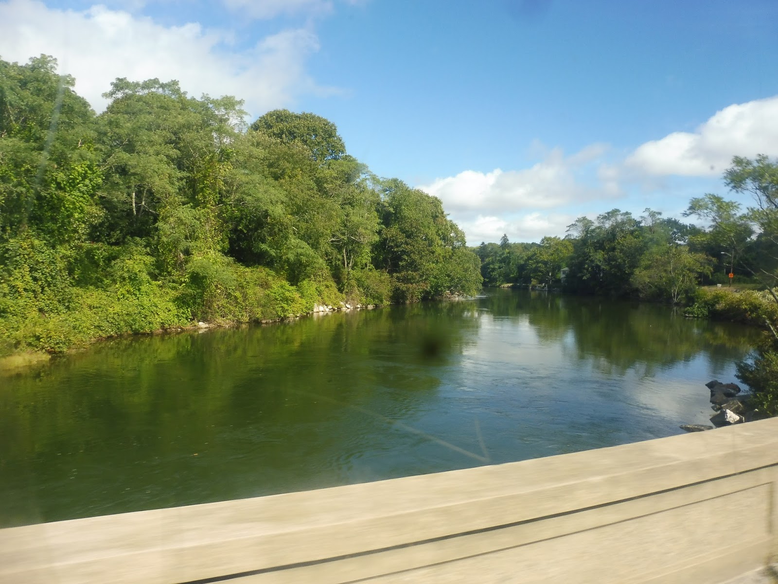 On weekdays, buses make an extra deviation around here – they turn onto South Ferry Road, run through the woods a bit, and loop around the URI Bay Campus. However, this was a Saturday trip, so we turned onto Bridgetown Road instead, which was more consistently lined with houses. The street curved south a bit, then east again for a lovely little river crossing.