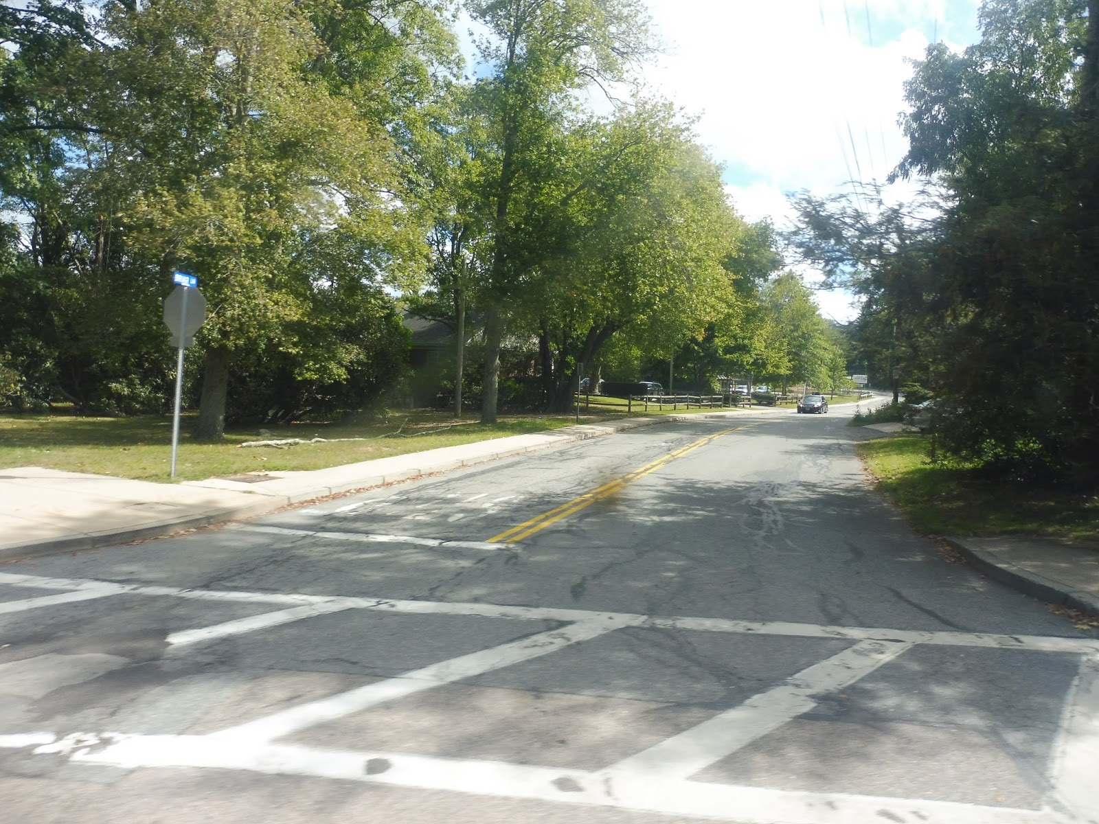 The road gained a median beyond the crossing, and grew rather wide by the time we reached the intersection with Route 1. There were a few suburban businesses at the intersection, but then the street became Mooresfield Road, and it was pure woods. And it was awesome!