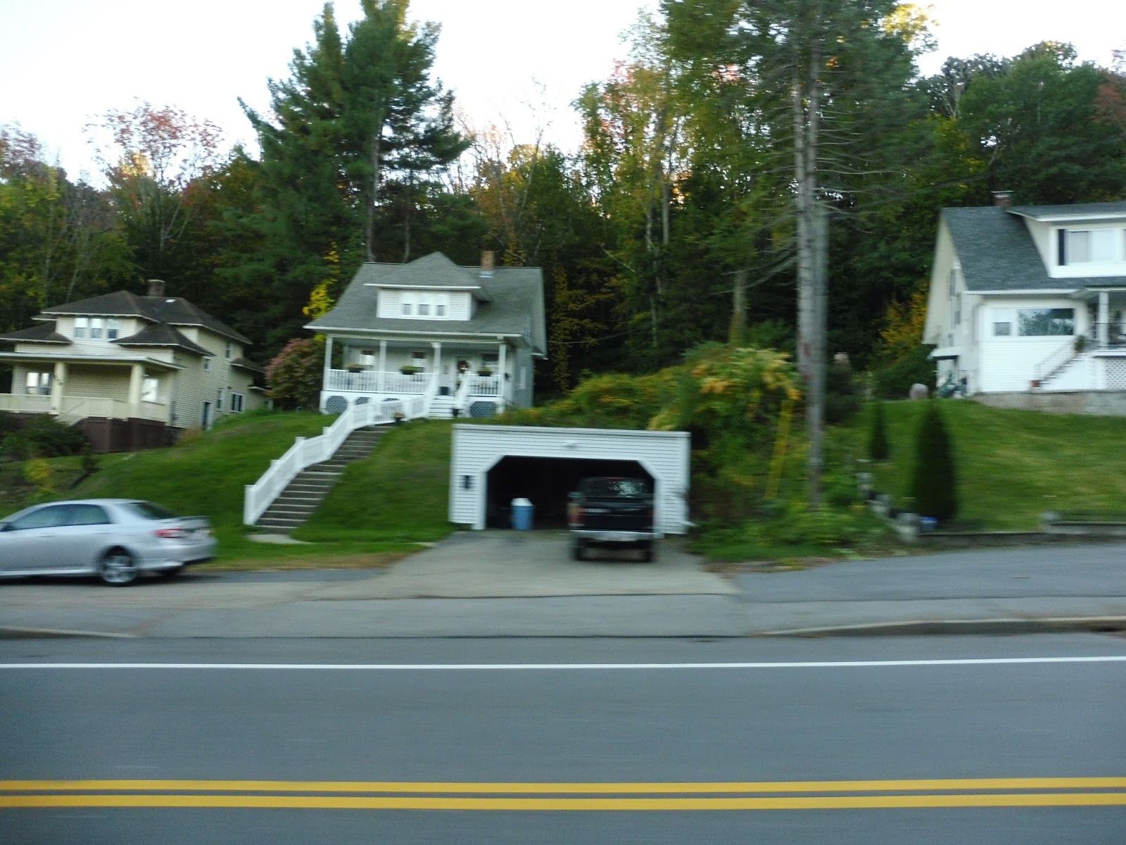 The street became a mix of businesses, houses, and apartments as it coasted down a hill. There were also some churches and a small park in the mix. After we crossed Park Ave, though, Pleasant Street became entirely residential, with woods on the other side!