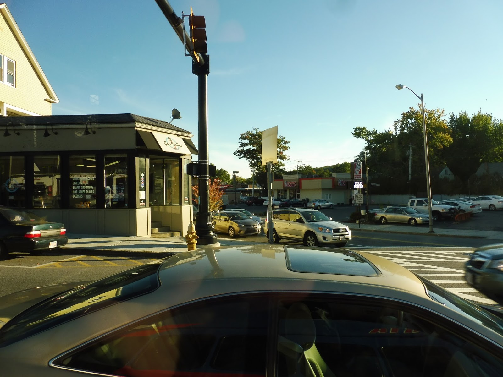 We arrived at a roundabout, and Pleasant Street continued to be lined with houses beyond, now on both sides of the road. There were, however, some nice-looking local businesses at the intersection with Richmond Ave. After many more houses, we finally arrived in Tatnuck Square, where there were varied retail buildings. This is the Paxton Shuttle’s only other stop in Worcester.