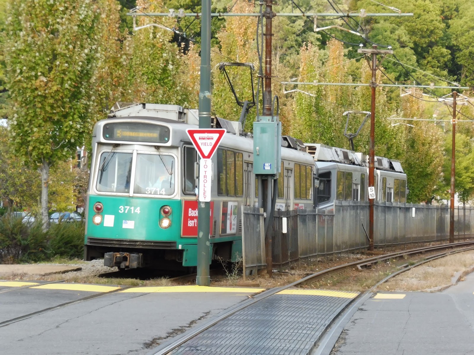 Anddddd…yeah, South Street is basically the same as the other ones. So, what else is there to say about these horrible stations? Uh…well, a few of them still have service alerts hanging up from 2012! Great to see that the B is up-to-date! Finally, I figured I’d mention the track connection between Chestnut Hill Ave and Cleveland Circle/Reservoir – it’s always cool to see trains running down there.
