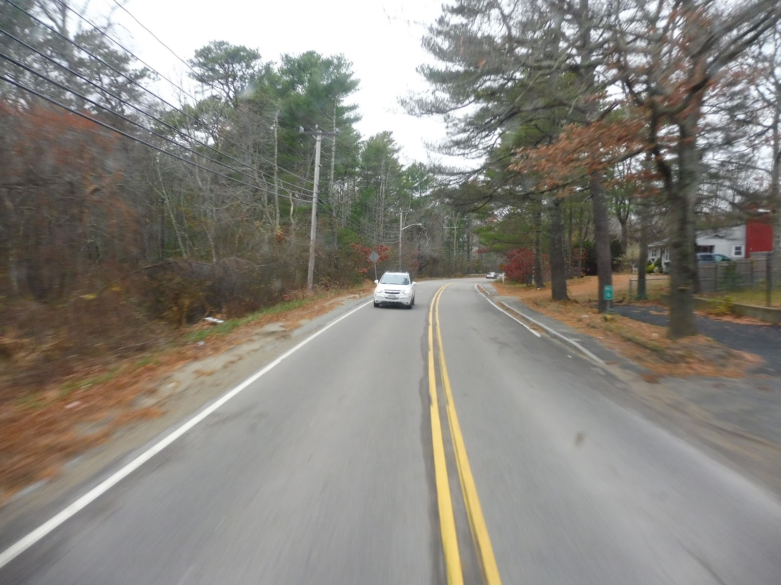 Leaving the start of the route at Stop & Shop, we turned onto State Road, which initially had businesses and parking lots alongside it. However, they ended quickly, and we were soon driving past lots and lots of houses. At one point we came up along a lake briefly, and there was a small business a little past there.