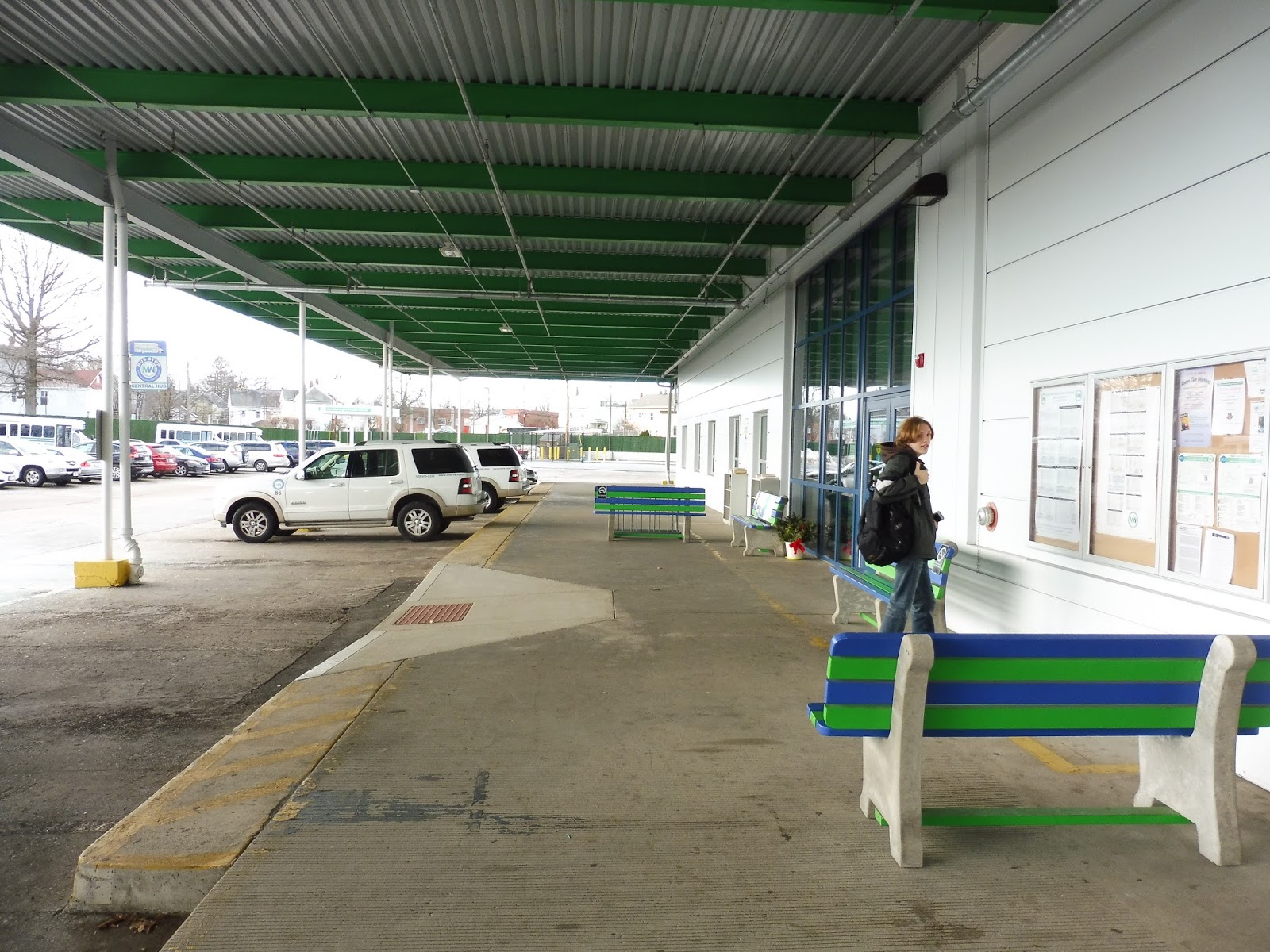 You know, the day we went to the terminal, it was pretty cold. Good thing the Blandin Hub has a spacious interior…oh wait, it’s tiny. The only place open to the public is a minuscule vestibule (hey, that rhymes!) with ONE SEAT. There’s a door further into the building, but despite a lack of signage saying so, the area is employees-only. I will say that the actual atmosphere of the building is pleasant – there are colored pictures hung up on the walls, and the receptionists are very nice. If only there was, I dunno, MORE THAN ONE SEAT.