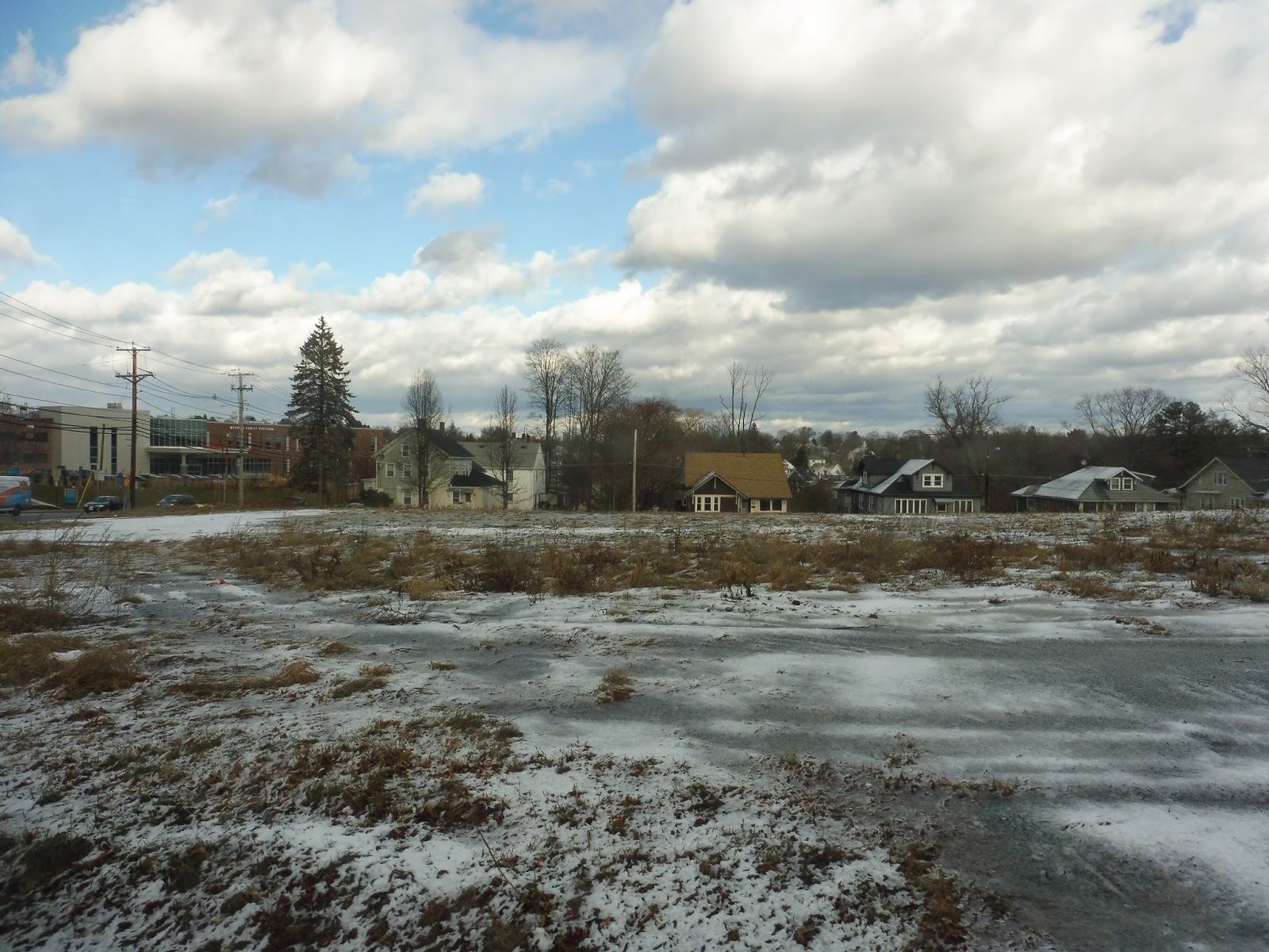 We took a bunch of turns to get out of this place, so I’ll skip ahead to when we were on Ivy Lane, now out of the development. There were normal houses everywhere again, and they continued as we turned onto Purchase Street. Next, we turned onto Dilla Street, then Sumner Street, which was lined with industrial buildings…and a random housing development.