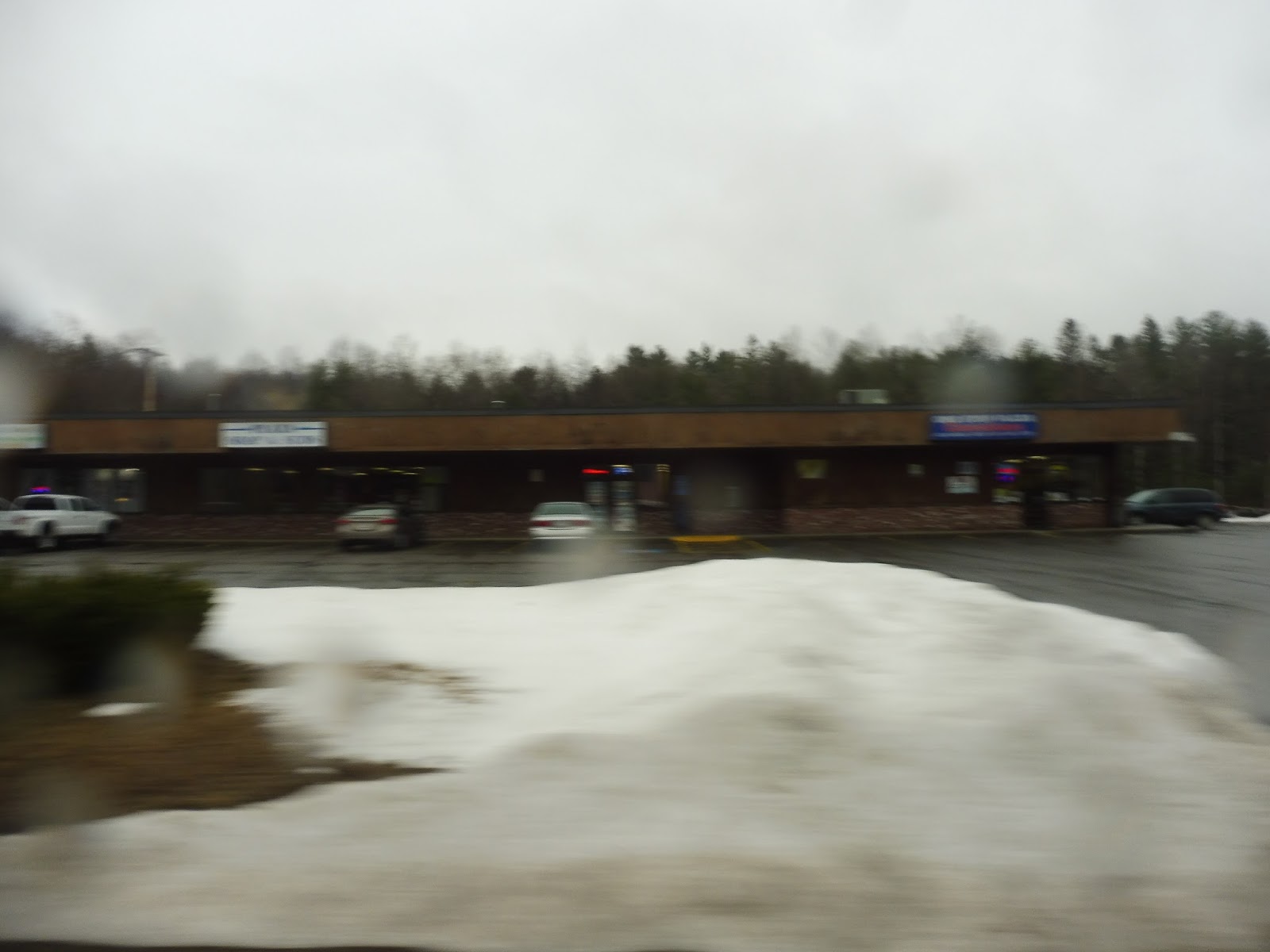 The street was called Baldwinville State Road from there, and we started to see some relatively consistent houses! Eventually the name changed to Main Street and we curved east, passing an ice cream shop and a strange-looking closed car dealership in the middle of a field. There was even some proper civilization in the form of Waterville Plaza! Yes, it was a terrible tiny place with really boring businesses, but it was something.