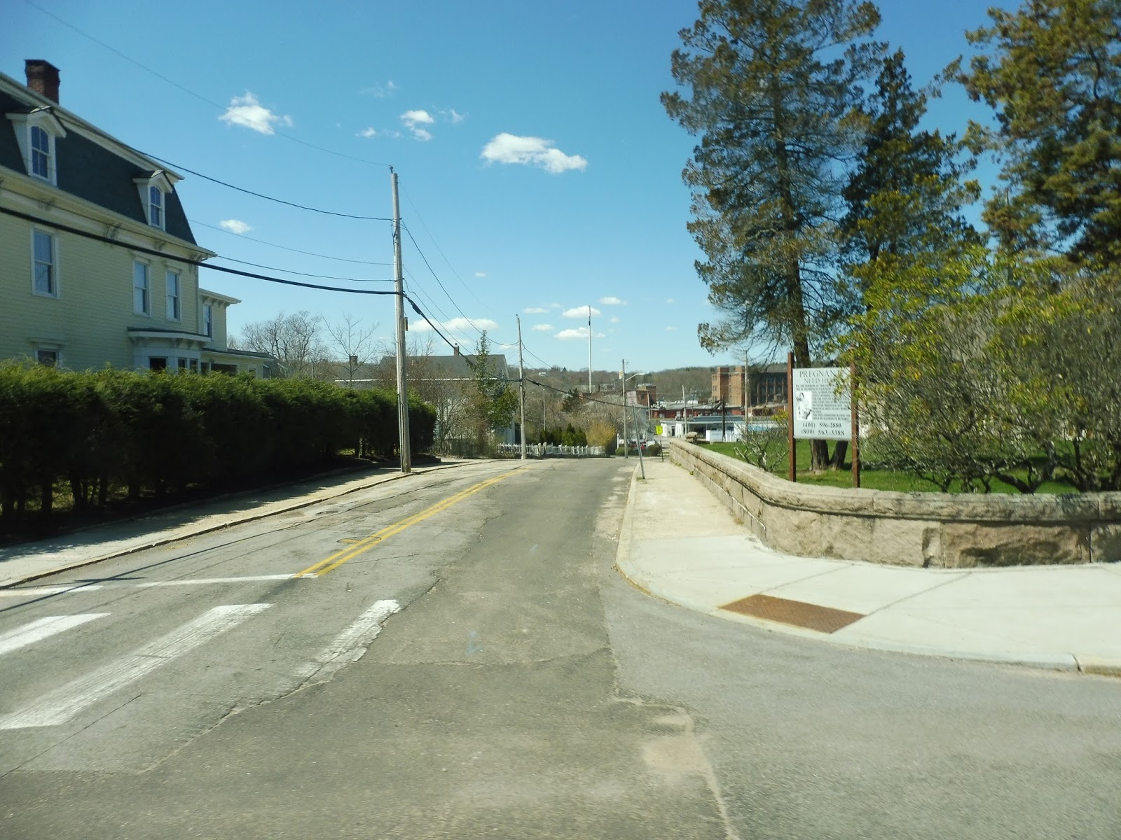 After that deviation, we headed down State Street, then turned onto Beach Street outside of a shopping plaza. The road was mostly residential, but there was a factory outside of which Beach Street curved northwest. We then turned onto Main Street, which paralleled the Pawcatuck River (but we couldn’t see it) and was pretty darn industrial.