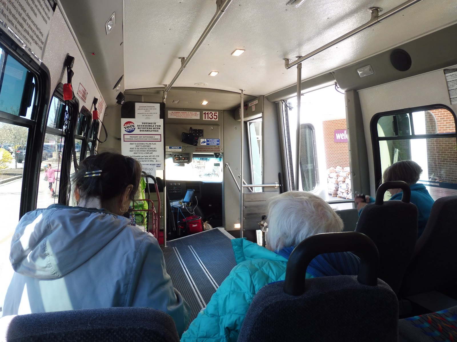 The trip started with a bang as the bus pulled into the Stop & Shop parking lot in Richmond. (How did we get there? Find out!) “You two are men,” the driver shouted to Nathan and I from the bus. “Help the ladies with their bags!” We helped the four old ladies waiting there put groceries into carts for the bus, then they each used the wheelchair lift one by one to rise into the vehicle. Once everyone was on board, the driver brought around a paper bag and we all put our money in. This was just the strangest start to any bus ride I’ve ever taken…