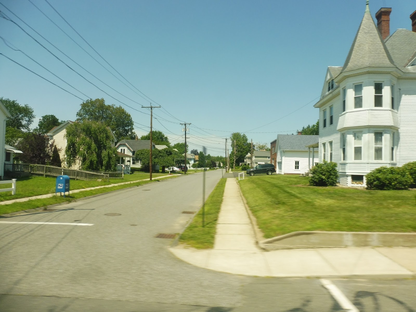 We were supposed to make a deviation to “Kirkwood Place,” but at least on my trip, we didn’t and just turned right onto Sykes Street. We passed some Palmer municipal buildings, then there was a section of forests and fields. After going under some telephone wires, houses showed up along the road, which eventually became Palmer Street.