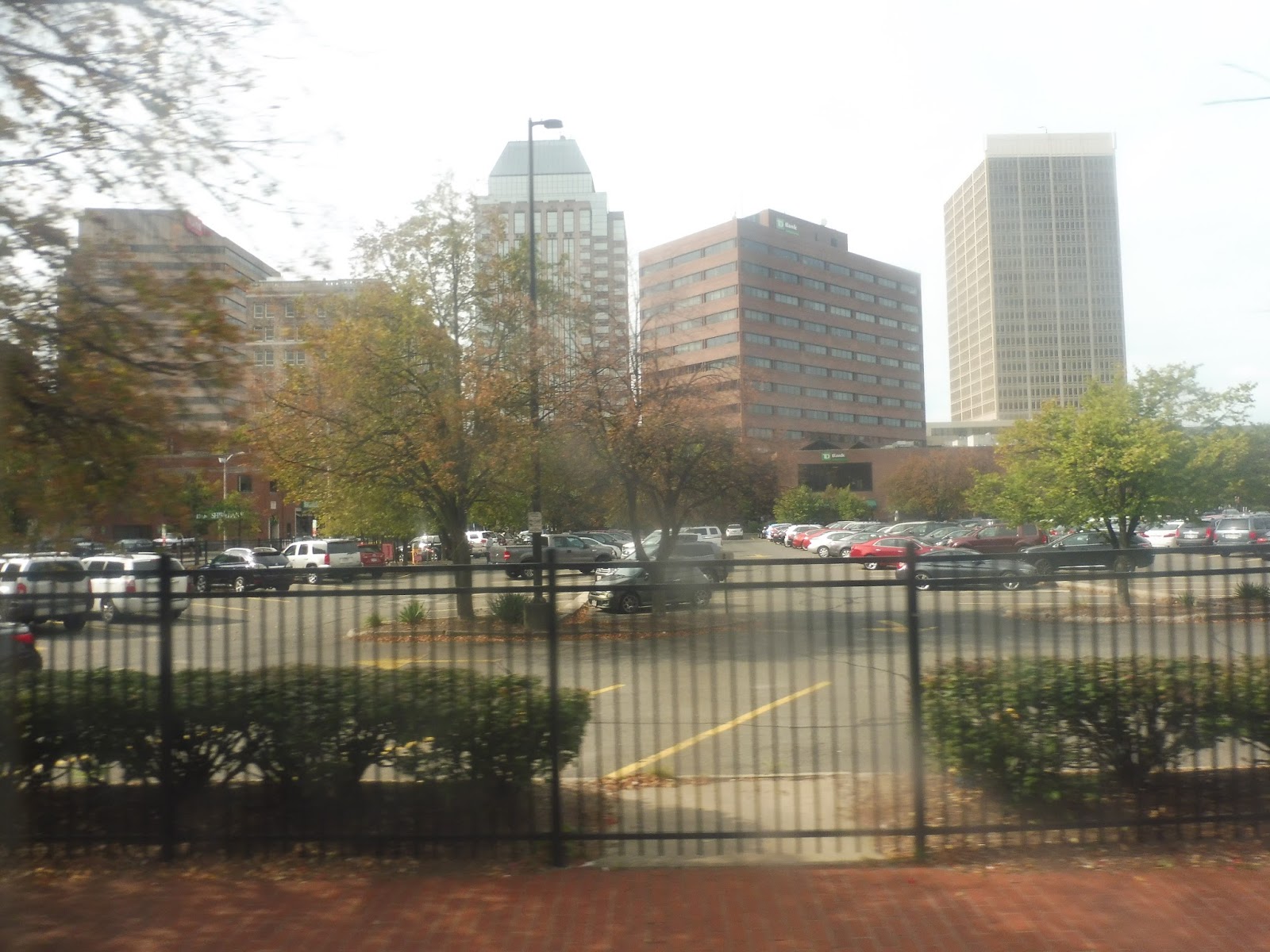 We boarded the bus at Union Station, but before it can get onto the highway, it has to do a little loop through Springfield. Thus, we went down Dwight Street first, running by the backlots of downtown Springfield. We soon turned onto Harrison Ave, making a pretty busy stop along there, then we turned onto Main Street, running down the city’s main drag.