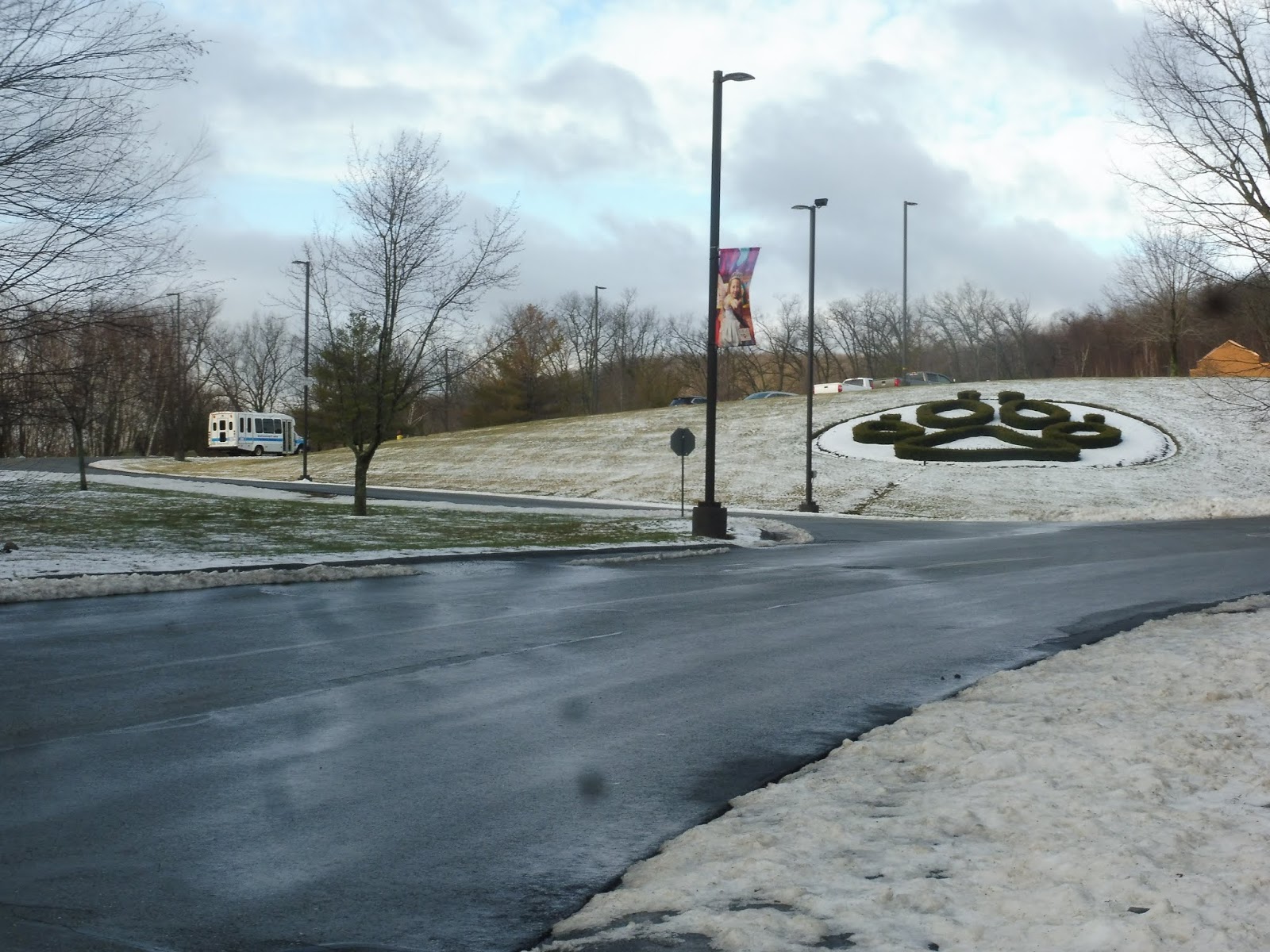 At least the main street, Princeton Road, had a sidewalk. Without crosswalks. And without shoveling. The snowy trudge across an interchange with Route 2 was a long and arduous one, but at the end of it was the entrance to Great Wolf Lodge! Of course, the lodge was up on a hill, so the road leading to it was long, winding, and unshoveled. Sighhhh…