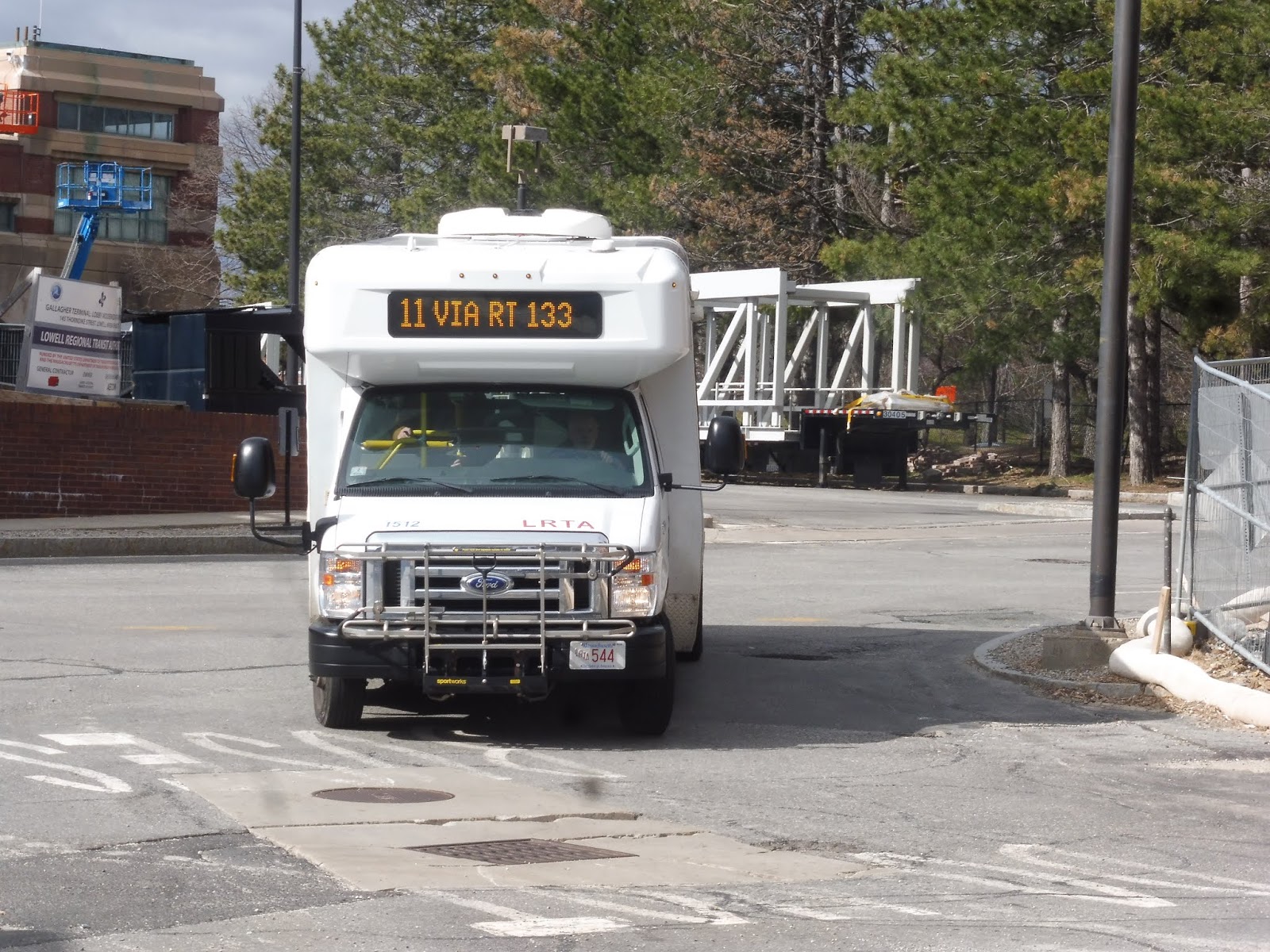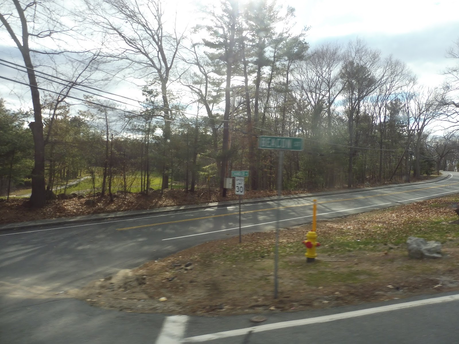 ALRIGHT, finally on the bus! Time to escape this place! We twisted our way down Great Wolf Drive, taking us back out to Princeton Road. We took this over Route 2, and on the other side, it was a mix of houses and industrial buildings. After curving under the Commuter Rail tracks, the road got woodsy before coming to Waites Corner, the terminus of the 5.