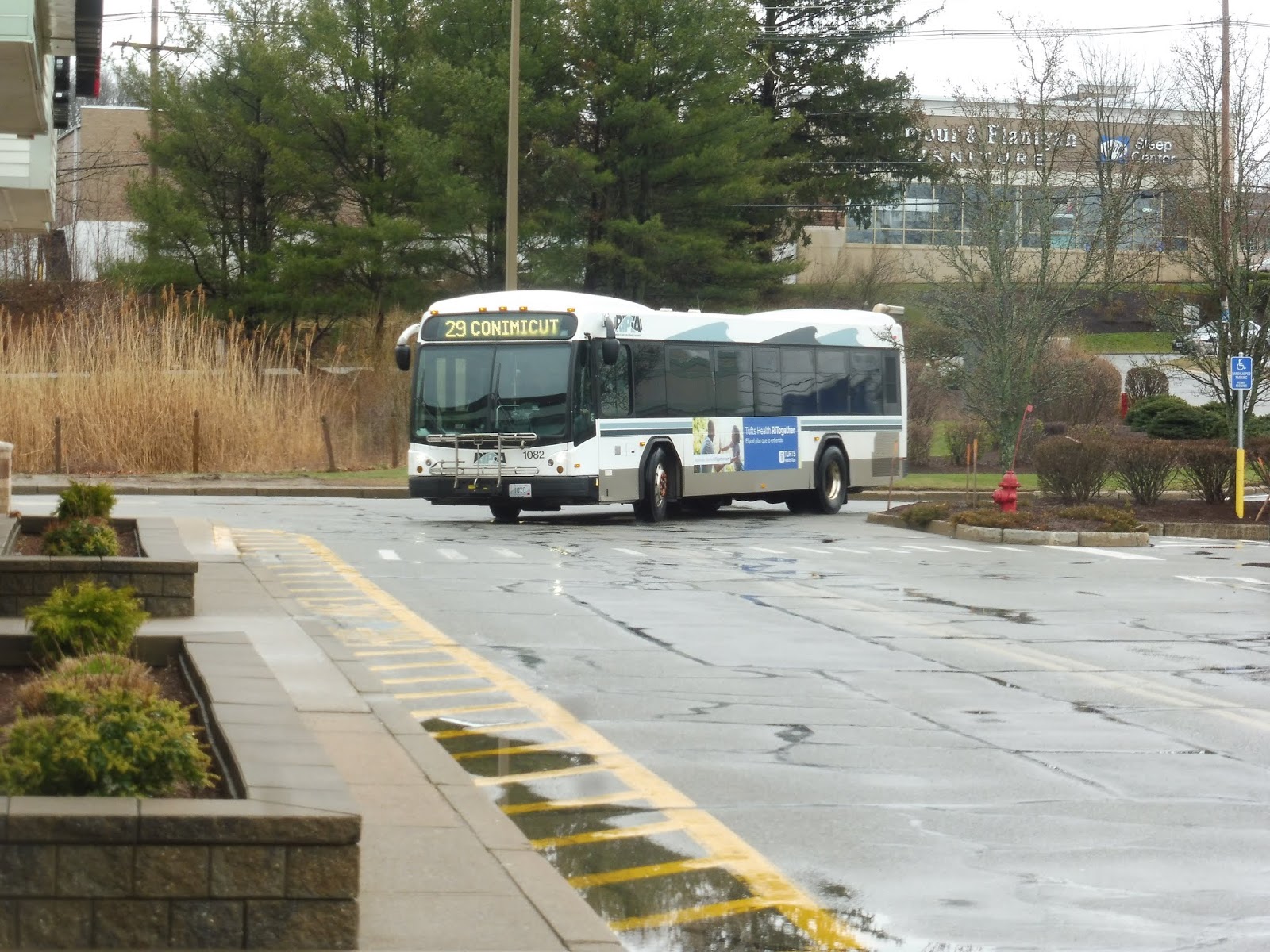 After that mess, we came out from the mall and made our way back onto Bald Hill Road, heading in the opposite direction. We went under I-295 and over the Pawtuxet River again (for the last time!), then we had to deviate into the Rhode Island Mall. Turned out that was easier said than done, thanks to Bald Hill Road’s big median I mentioned before. We had to enter the mall parking lot north of the mall, then curve our way around to the actual stop.