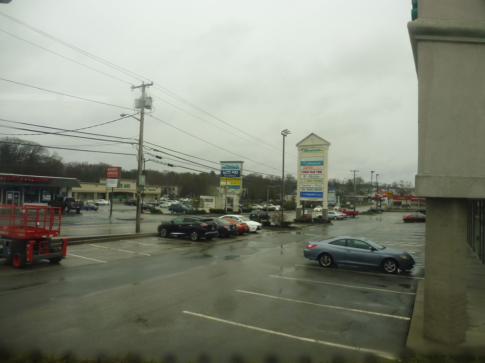 After that, there were some houses, but it turned to suburban businesses quickly. We merged onto Toll Gate Road soon, then we turned onto Bald Hill Road. Yes, that’s the same Bald Hill Road that Cowesett Corners way back at the beginning of the route is on. Yes, what takes 25 minutes by bus is only a four minute drive. Wonderful.