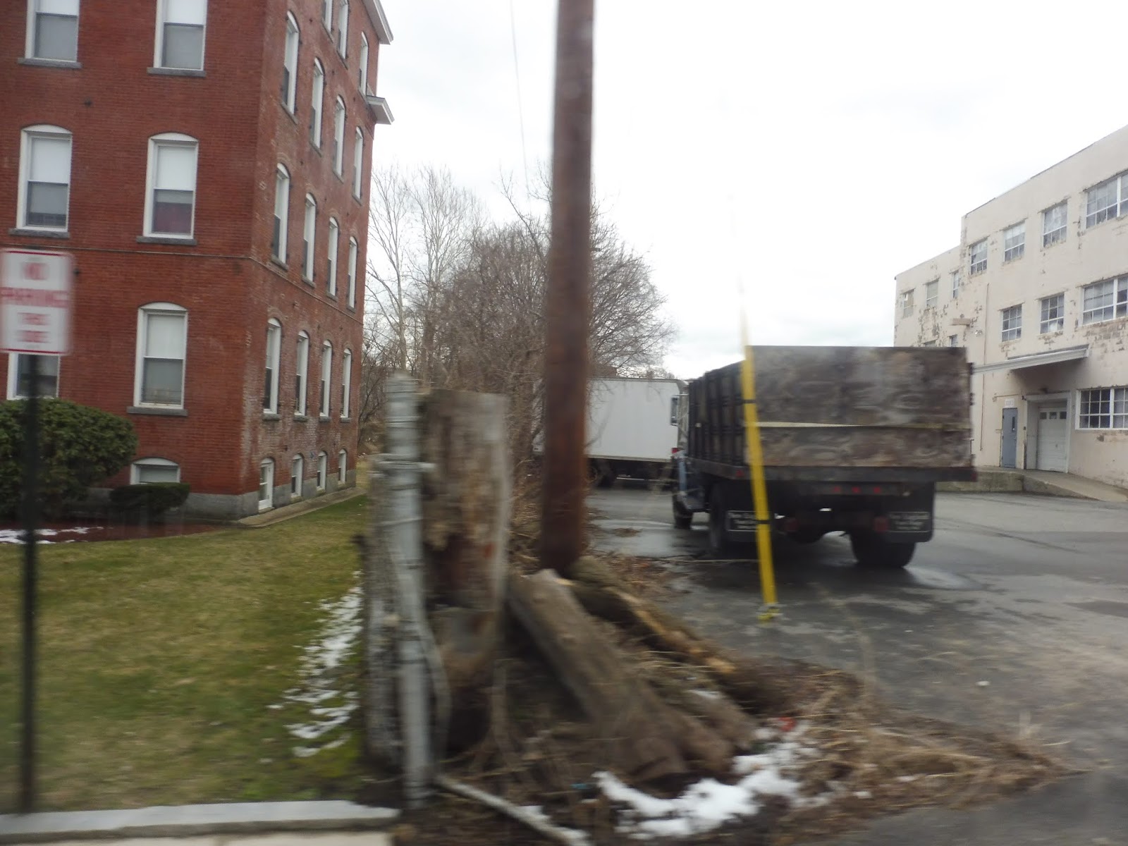 From here on out, the route parallels the 5 directly, so it actually becomes “limited stop,” with only a few places where you can pick up the bus. It doesn’t really matter because I doubt many people are boarding this thing to begin with, but whatever. Limited stops. So we headed up Westminster Street with the 5, which had a forested section next to the Whitman River after Waites Corner before coming back into a mostly industrial area.
