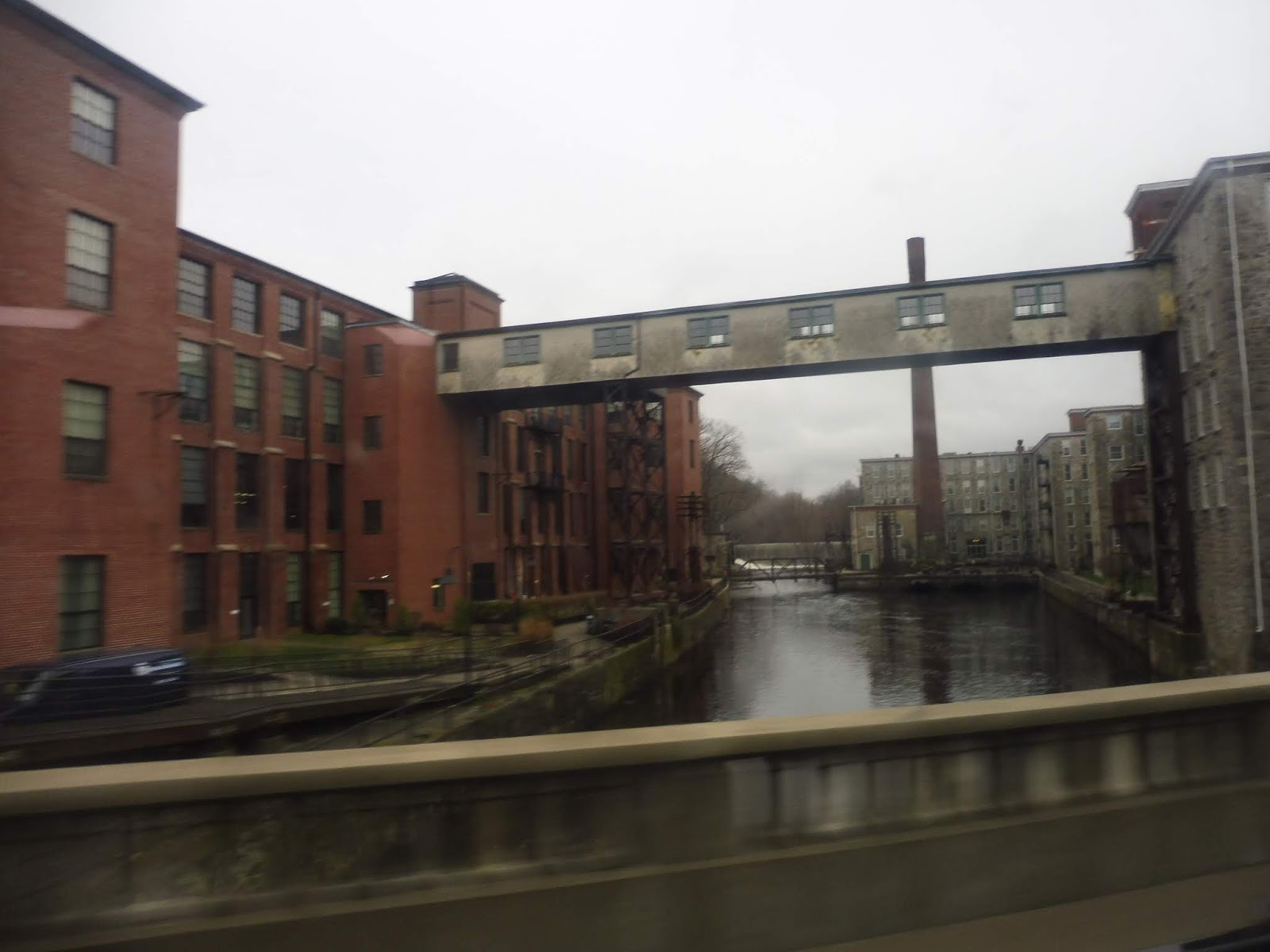 Waterman Ave was a little weird. There was reasonable density along it, but it tapered off almost immediately past the road, devolving into woods within two blocks or less on either side. Entering Smithfield, we came up alongside a huge old factory, turned onto Esmond Street, and crossed the Woonasquatucket River.