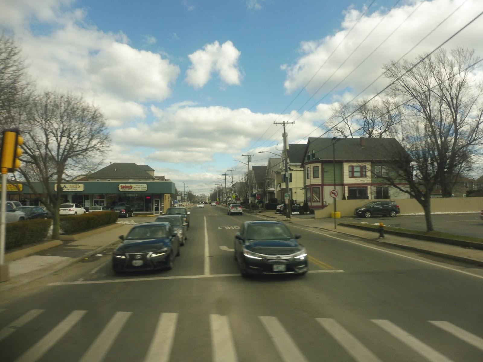 We left the mall on Lambert Lind Highway, which was lined with suburban businesses with parking lots. Once we entered Cranston, we turned onto Mayfield Ave, which was entirely residential – a big change from before. It turned into East Street, but then the area started to get industrial. We soon turned onto Howard Ave, which went through a campus full of various municipal buildings.