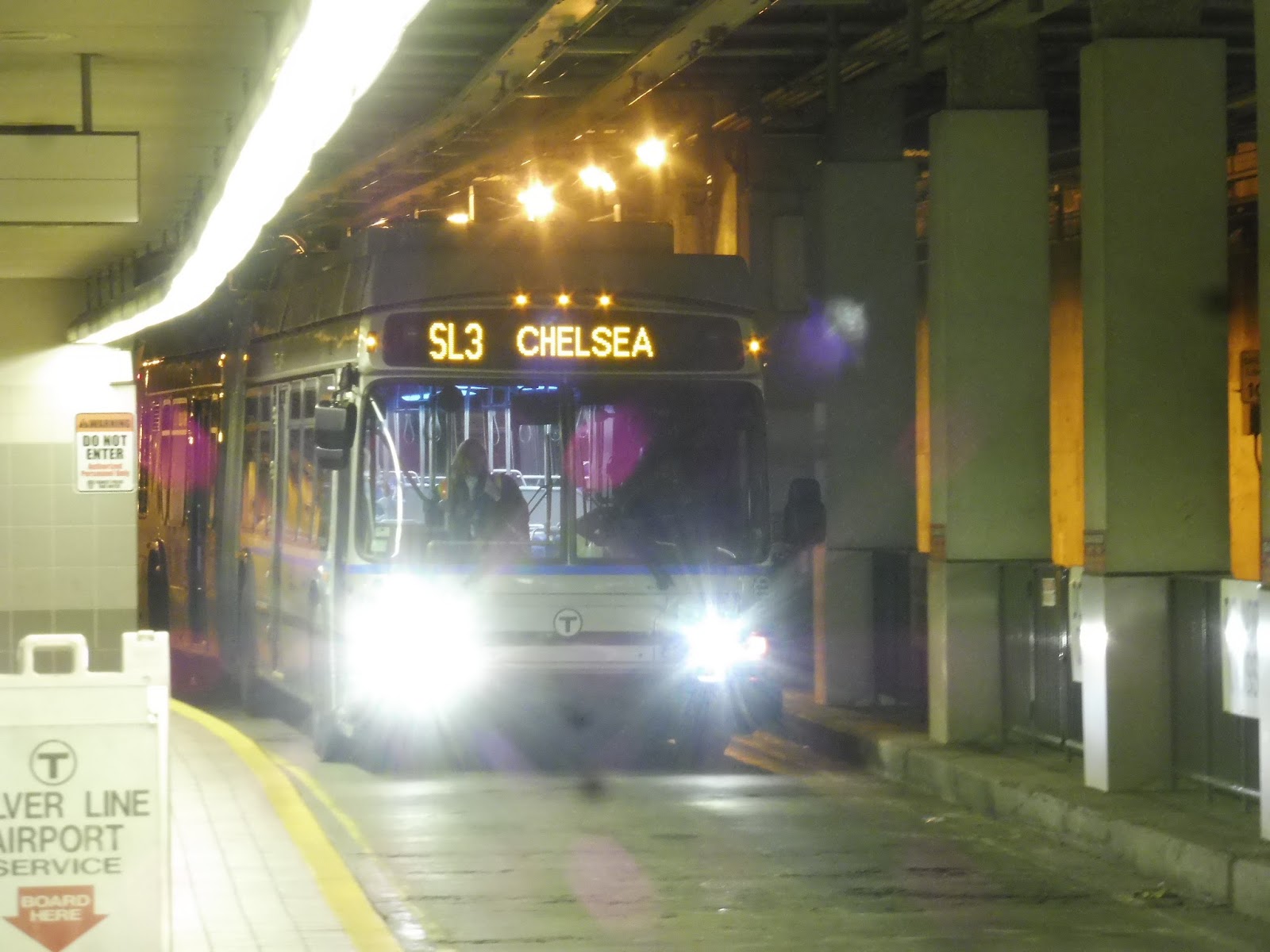 The Massport 77 turns around here as well, and its stop is right next to the station. There’s a sign saying not to go in there because it’s an employees-only area, so we’ll discuss it from afar. There isn’t much outside, but a waiting room inside the Chelsea Employee Garage provides all the amenities anyone would ever need. It’s probably nicer to wait at than the Silver Line station! Unfortunately, it seems that the hyper-frequent 77 often blocks the Silver Line, which is BAD.
