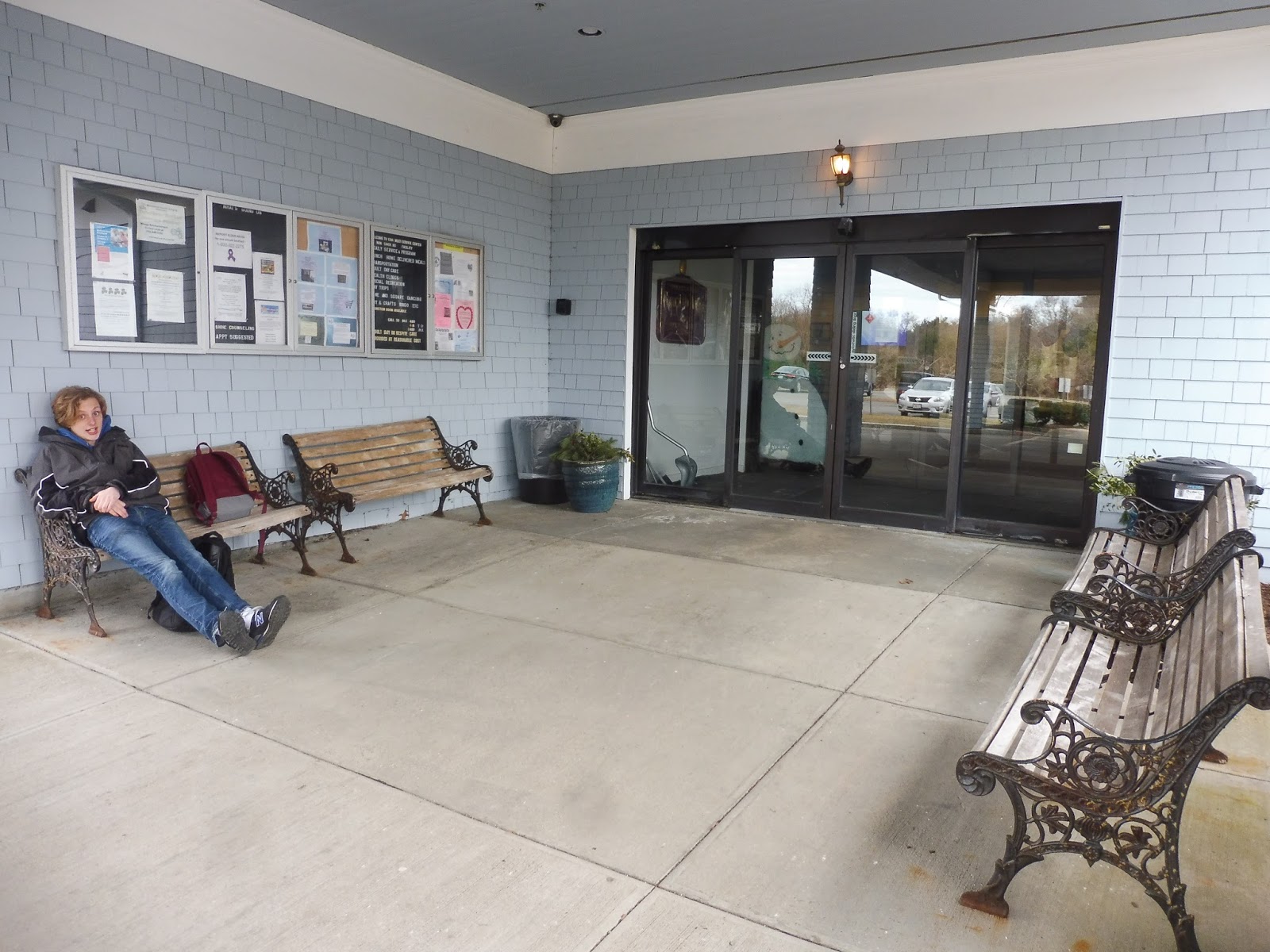 As we were running down Plymouth Street, the officer asked when the bus was leaving. “Noon,” we said. “Huh.” he said. “You might‘ve made it.” After just five minutes of driving, we pulled into the Council on Aging. We thanked the officer as he let us out, and we headed towards the front entrance. I was super thankful for the ride, but we were now incredibly early, so we just found a bench outside the building and sat down.