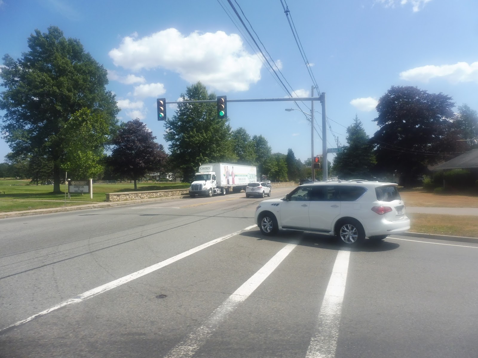 It turned out that this was a double deviation – we also had to serve a Target within the same complex. But with that out of the way, we came back onto Centre Ave, and after a few more small shopping plazas, it got mostly residential and we entered Rockland. Merging with Market Street, we curved around past lots of suburban businesses with parking lots before sailing past some houses to get to an Ocean State Job Lot deviation.