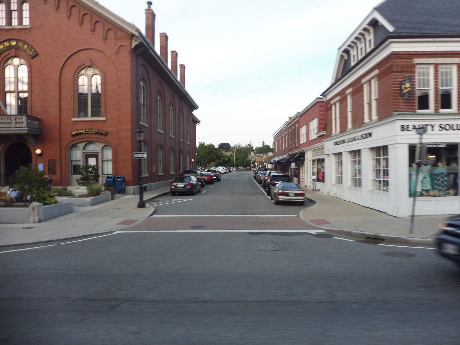 We turned onto Railroad Ave, taking us alongside the Commuter Rail tracks past an apartment building and some businesses. After going by the station, we crossed the tracks onto School Street, which went through a cemetery to Central Street. We took that up to Andover Center, where we turned onto Main Street amidst lots of charming businesses.