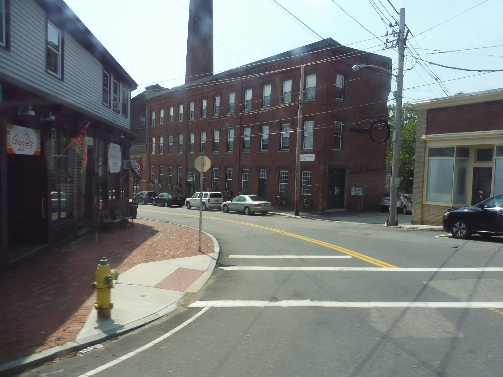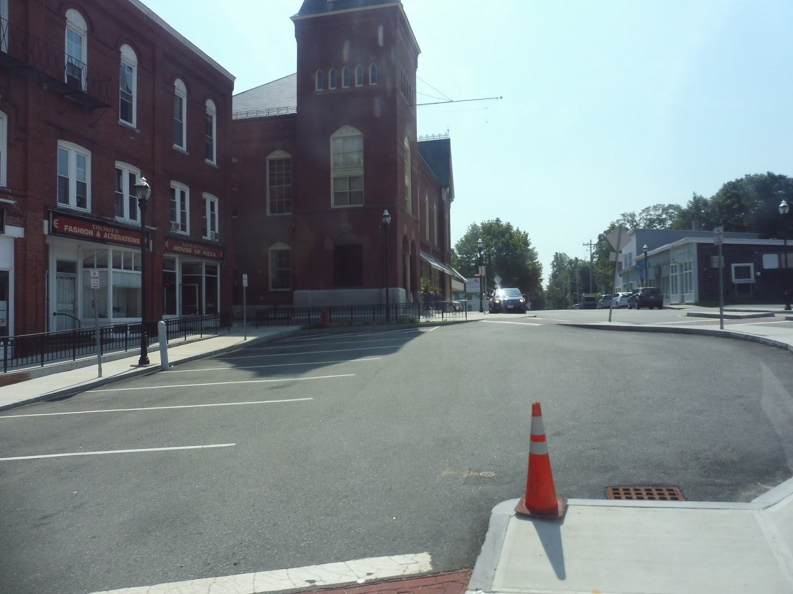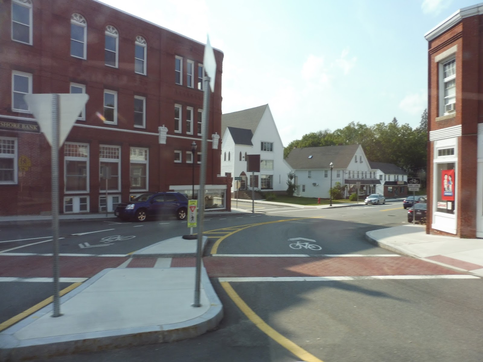We pulled out of the Costello Transportation Center and headed down Elm Street into Amesbury Center. Like always, it was gorgeous, with diverse small businesses houses in marvelous brick buildings. We turned onto Friend Street and navigated a roundabout onto School Street, where there were some municipal buildings, houses, and a church.