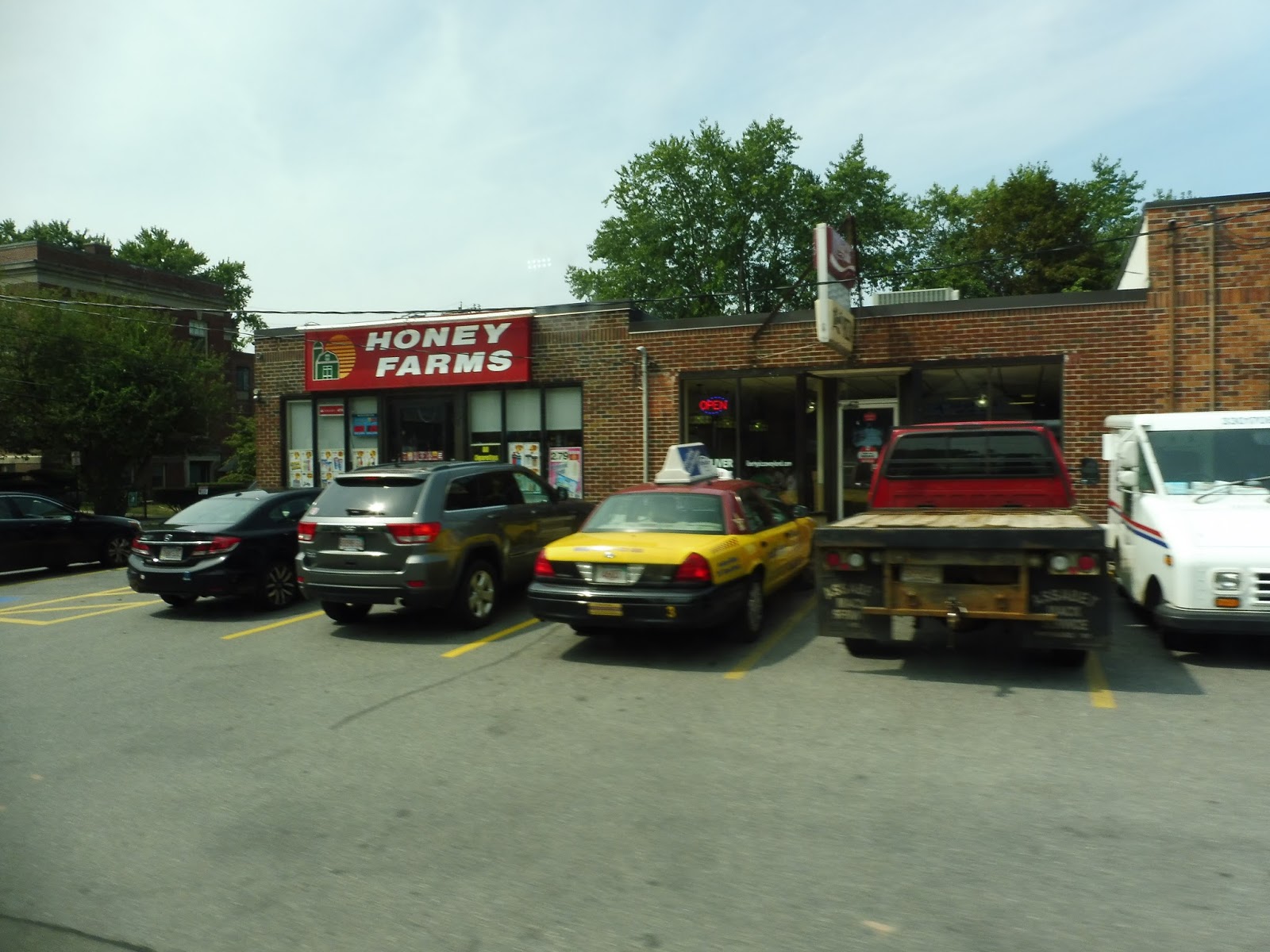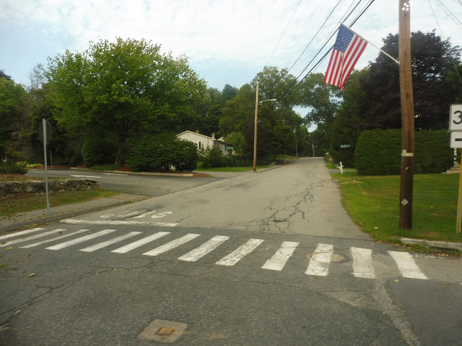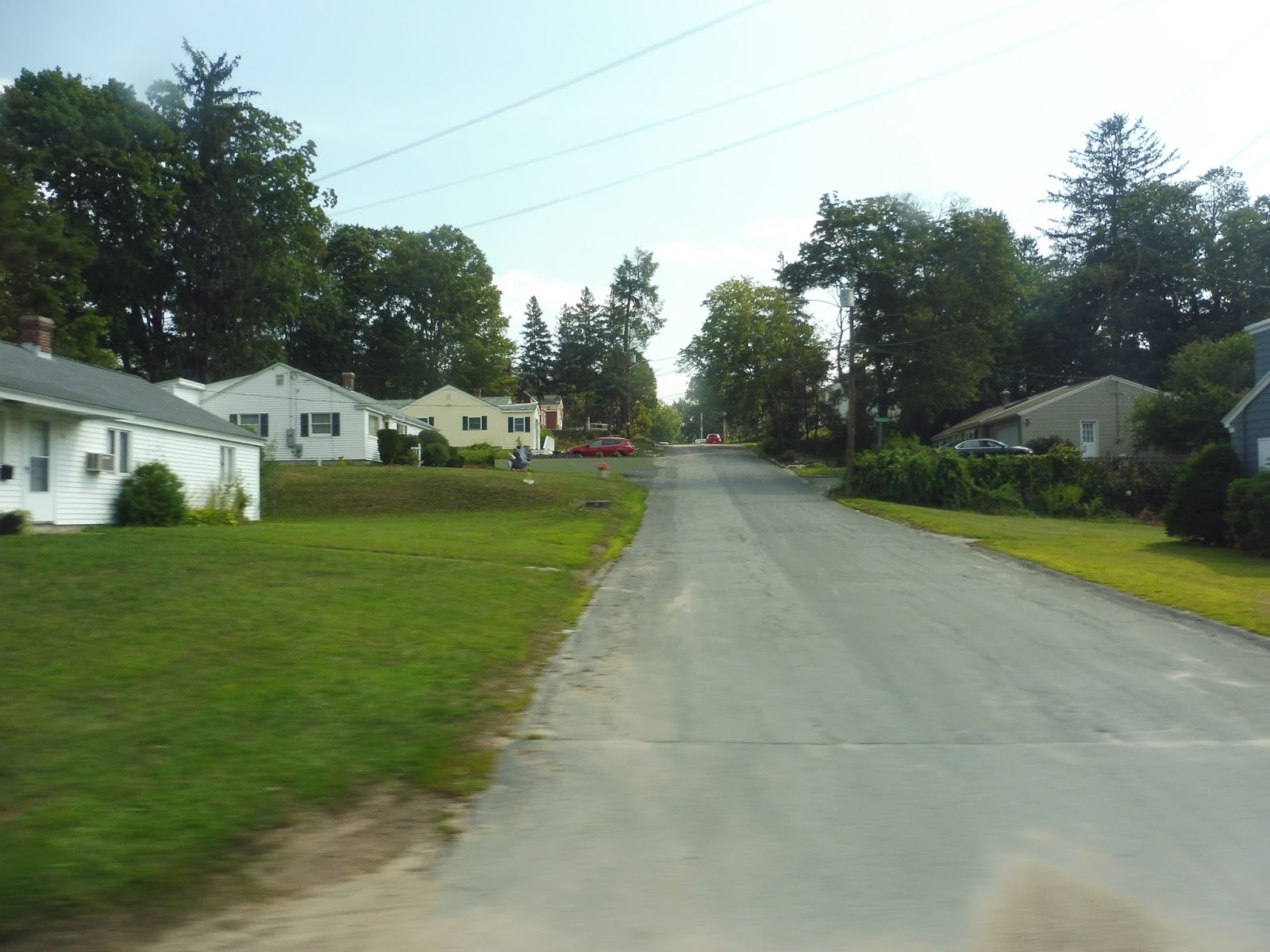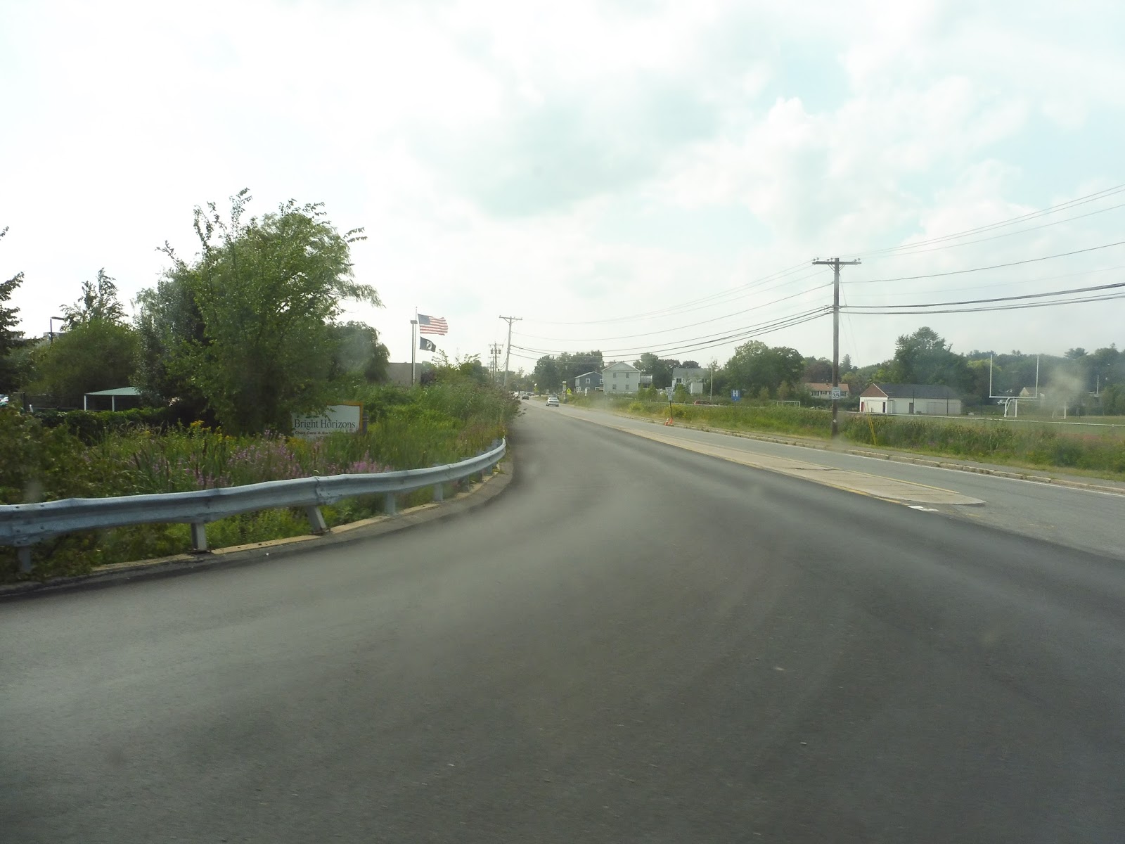 We officially left the Center as we headed down the residential Sparhawk Street. Dense houses continued when we turned onto Highland Street, although they were broken at one point by a hospital. We merged onto Haverhill Road, passing a big cemetery, some suburban businesses, and an industrial area.