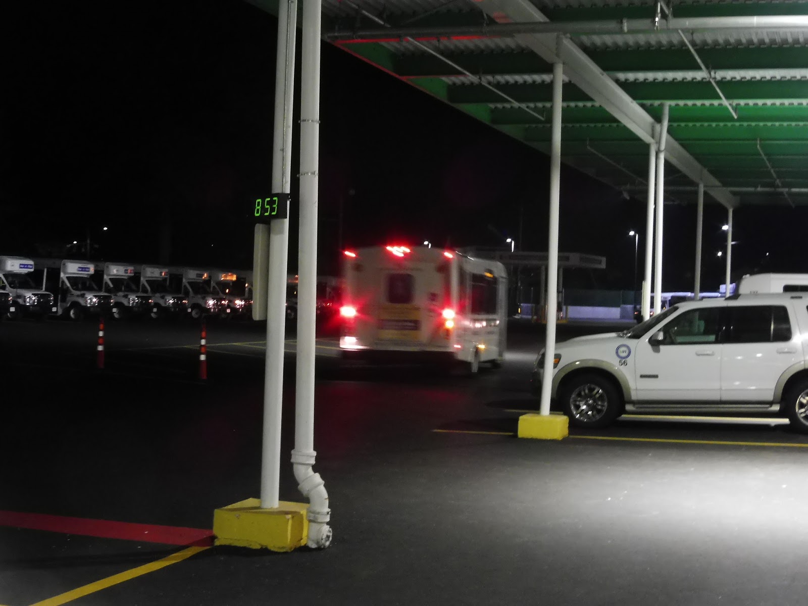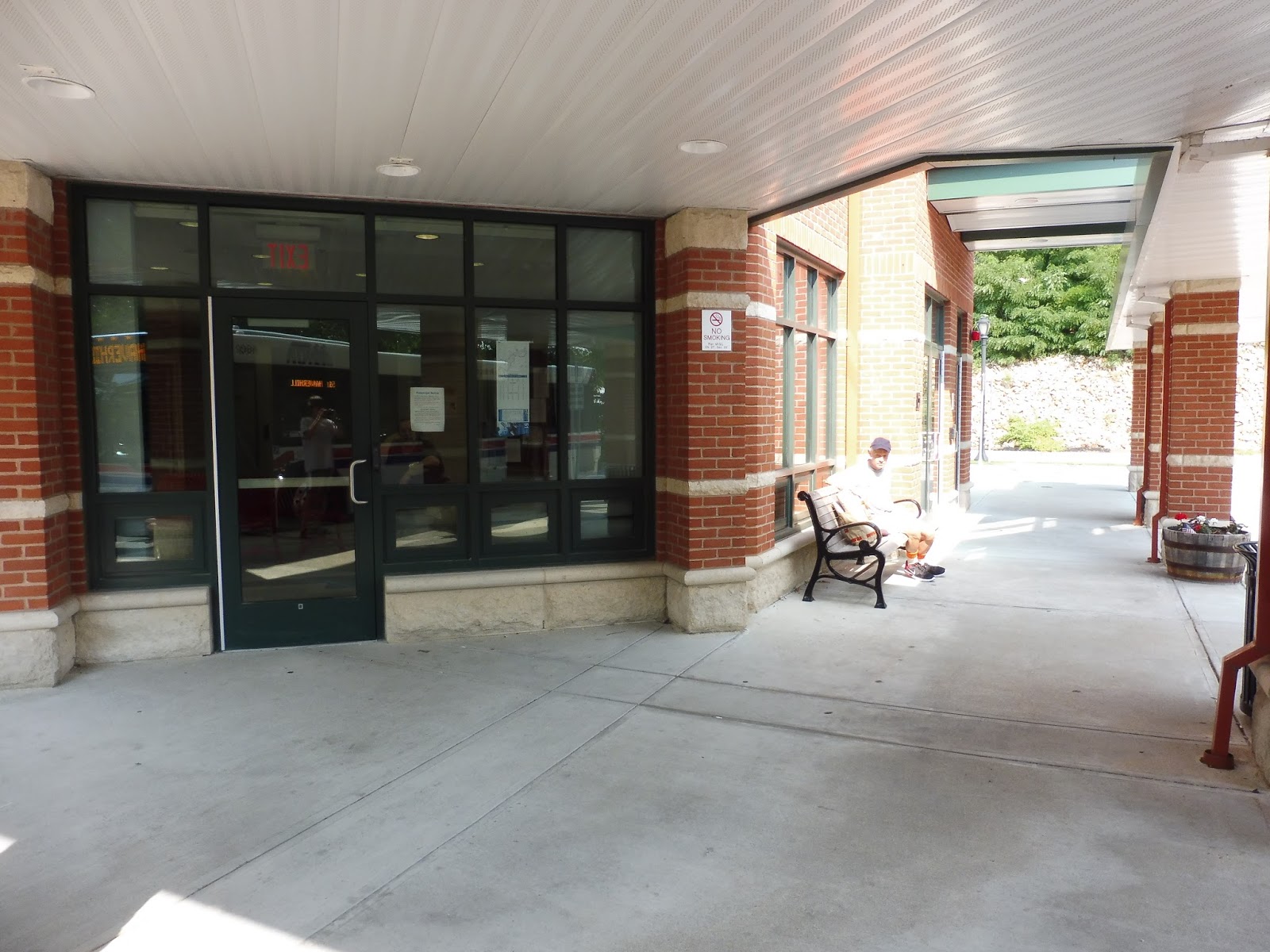 There really isn’t much to say about the boarding area because there’s nothing there. It’s a sidewalk in the middle of a parking lot with spaces for buses to pick people up, and that’s about it. This place does have parking, but I’m not sure how many spaces there are or how much it costs to park in them.