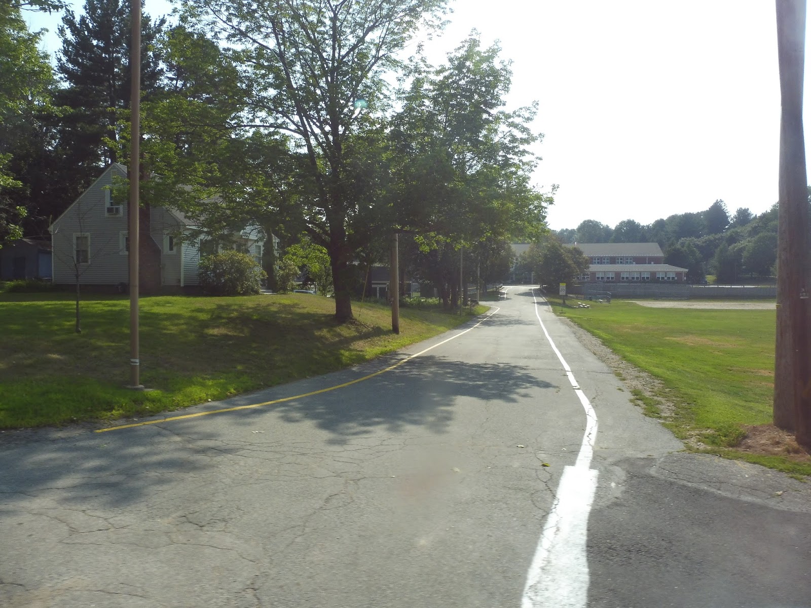It stayed like this for a good while, and even the annoying shopping plaza in the middle of it all had tasteful architecture. Once Main Street curved south past a church, though, we officially left the center and the road became lined with houses. It was totally residential (aside from a library and a church) until we turned onto Chickering Road outside of the North Andover Middle School.