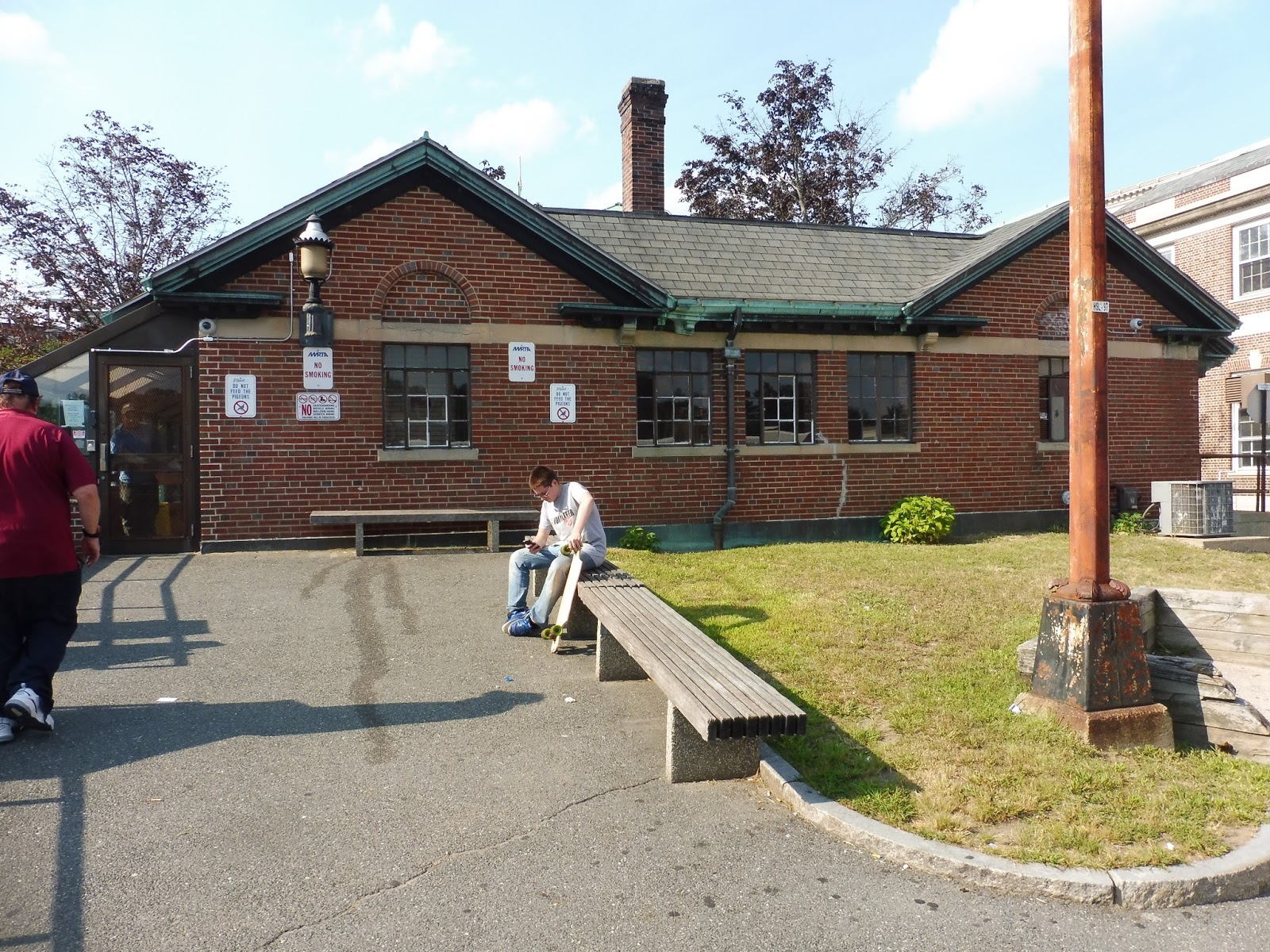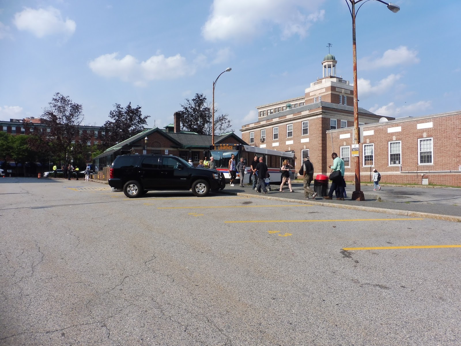 We went alongside a common on Common Street, but once that ended, it was businesses, apartments, and parking lots lining the road. It ended at a gigantic old mill where we turned onto Union Street, taking us over a canal, past some more old factories, and over the Merrimack River. Once on the other side, we deviated into the Commuter Rail station, referred to on the schedule as the “McGovern Transportation Center.”