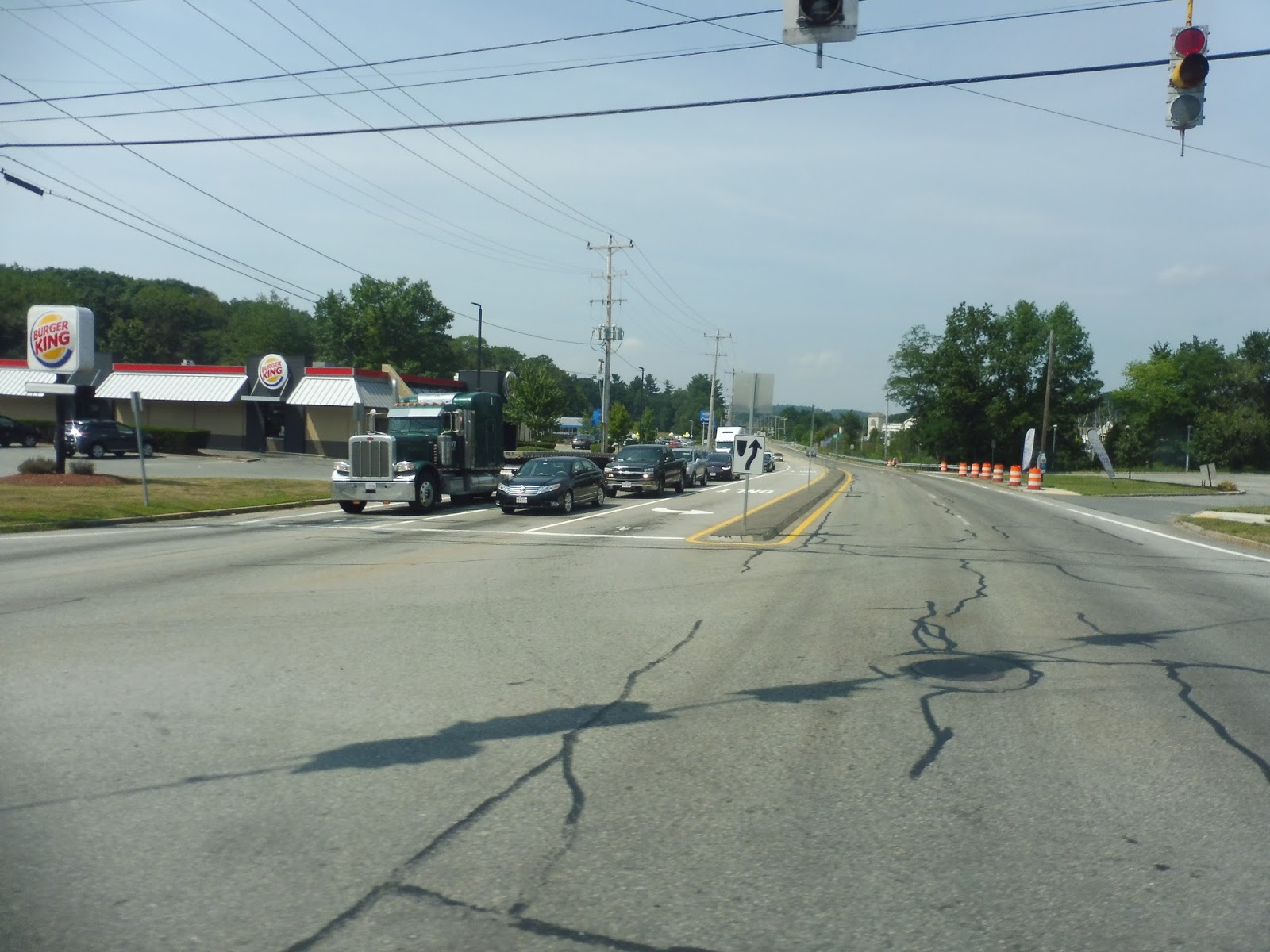There was a short section of trees, and it marked the point where we entered Methuen. The road was Merrimack Street now, but not much else changed until we went under I-495 and it got industrial. Next, we turned onto the residential Pleasant Valley Street, the start of the 1’s very long deviation, including no less than three mini-deviations within the deviation!