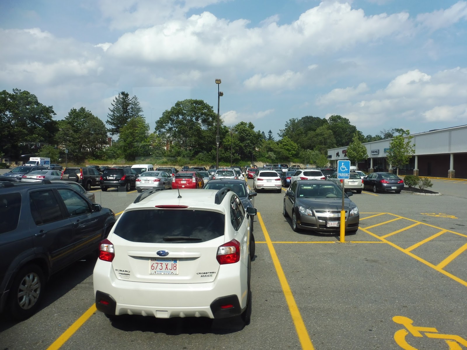 We took a few streets to get onto Ring Road, which went along the south side of Shopper’s World, then curved to the west side. We continued onto Shopper’s World Way, which took us to a deviation to BJ’s. From there, we made our way to Cochituate Road, then Calder Road, both going by many suburban businesses with parking lots.