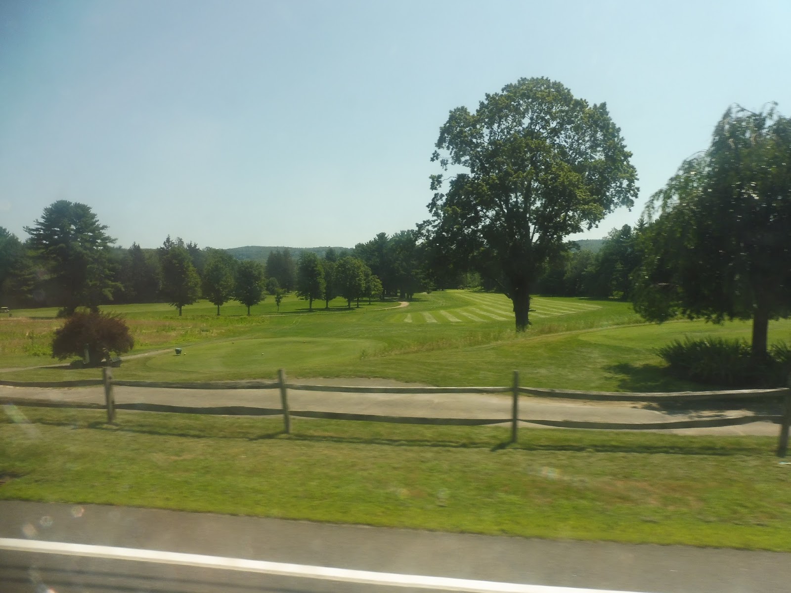 For some reason, the R27 was planned in the most complicated way possible. It had two deviations along the route that certain trips served, and my trip was doing one of them. Thus, we turned onto Stony Hill Road, which was more houses, then it ran straight through a golf course. We turned onto Tinkham Road next, passing more sparse houses.