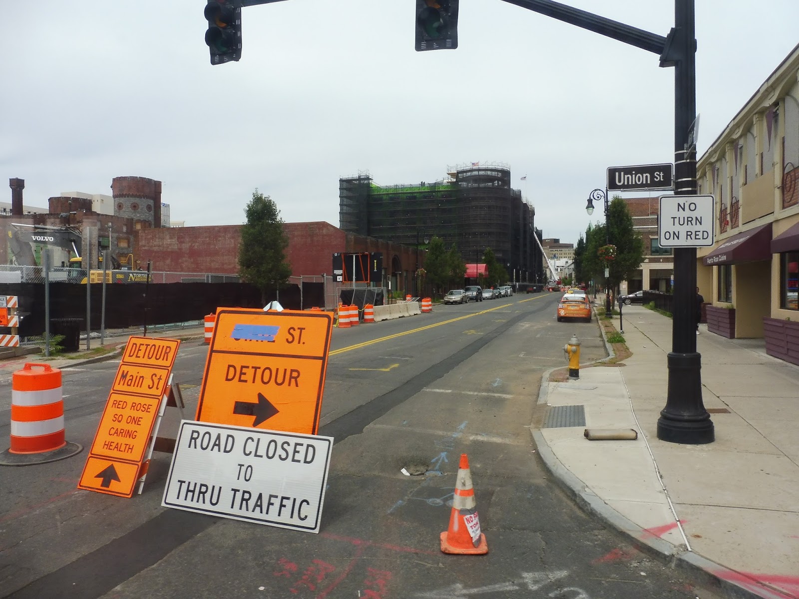 Despite being a crosstown route, the X92 still starts at Union Station. Alright, that’s a little weird…but yeah, we left the station and came down onto Main Street. There were tall buildings and businesses everywhere, but due to a construction detour, we had to make a deviation via State Street, Maple Street, and Union Street.