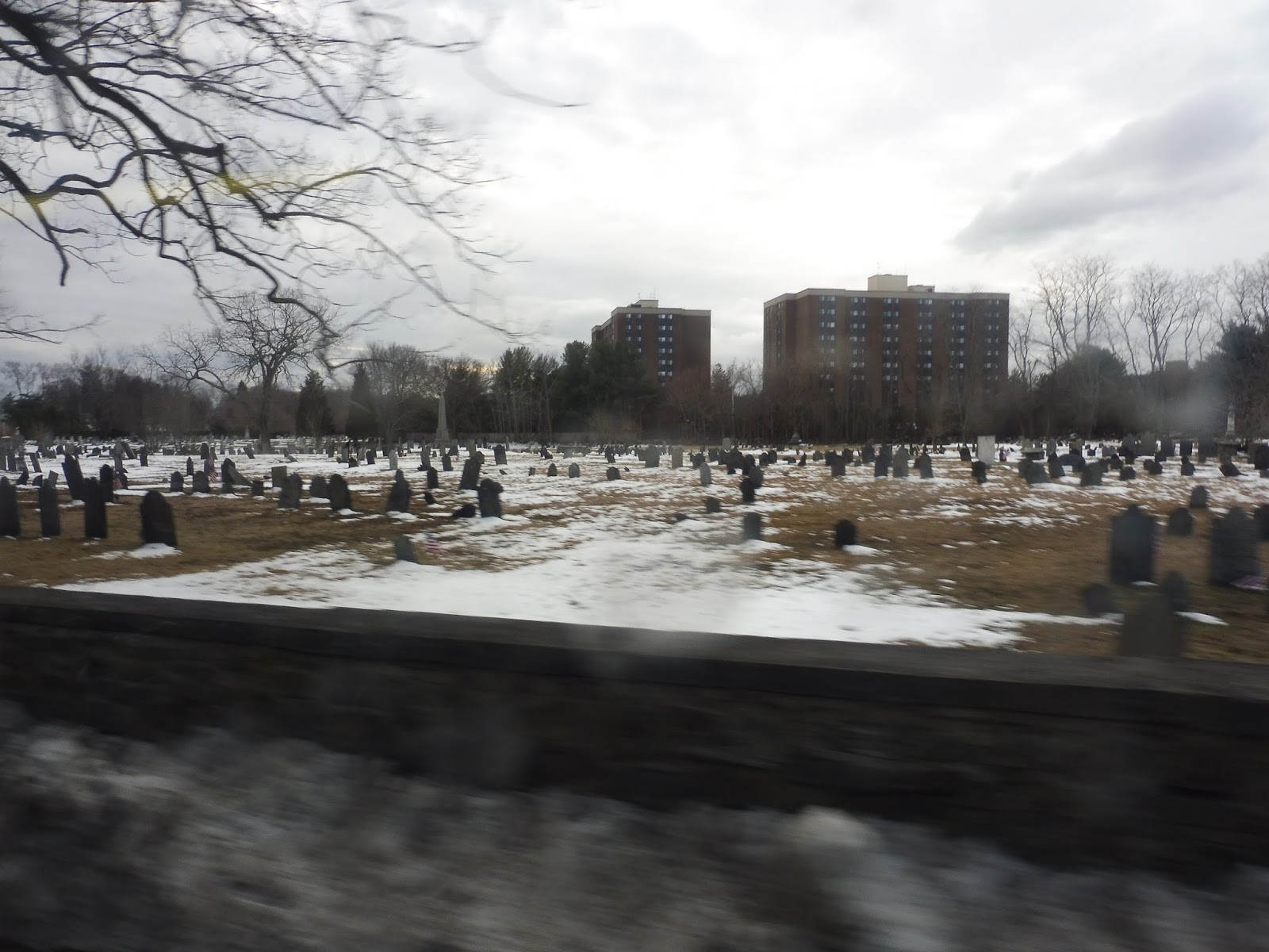 Well, we did make it to Newport Ave (entering East Providence), which was mostly lined with suburban businesses and parking lots. Near a golf course, we merged into the residential Pawtucket Ave. The road crossed over a single train track, then a large cemetery occupied one side of it.