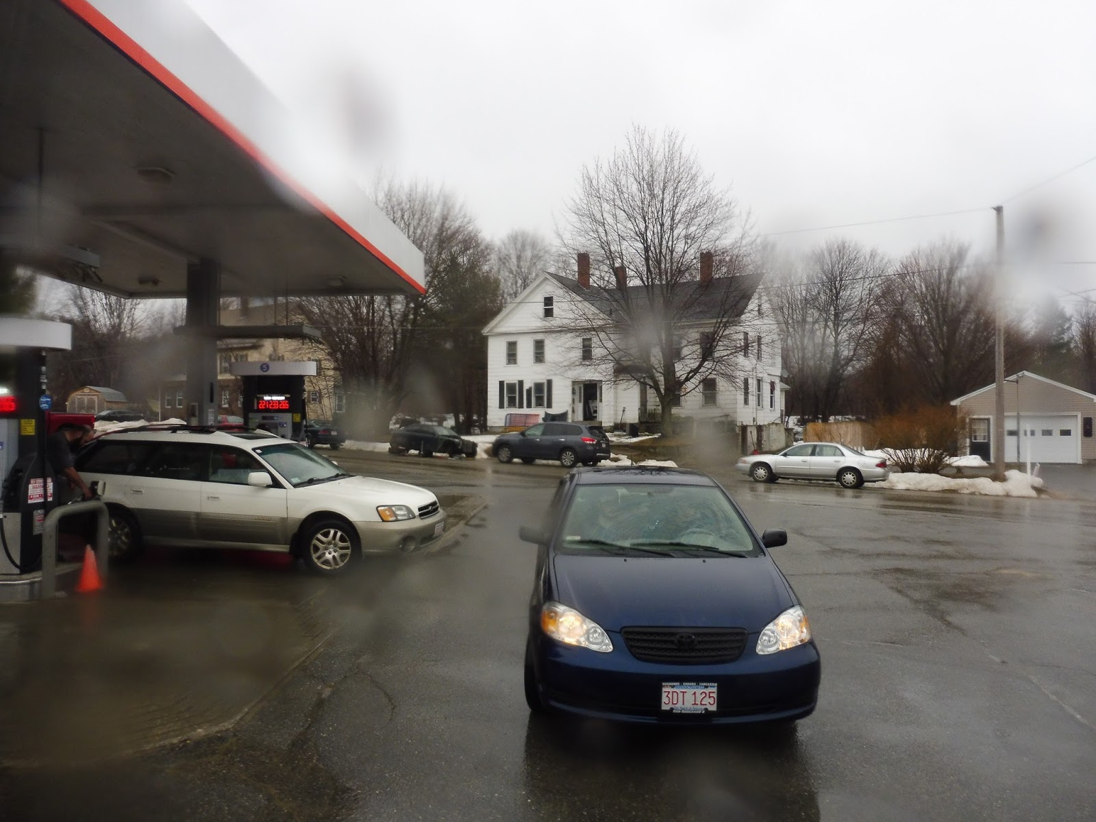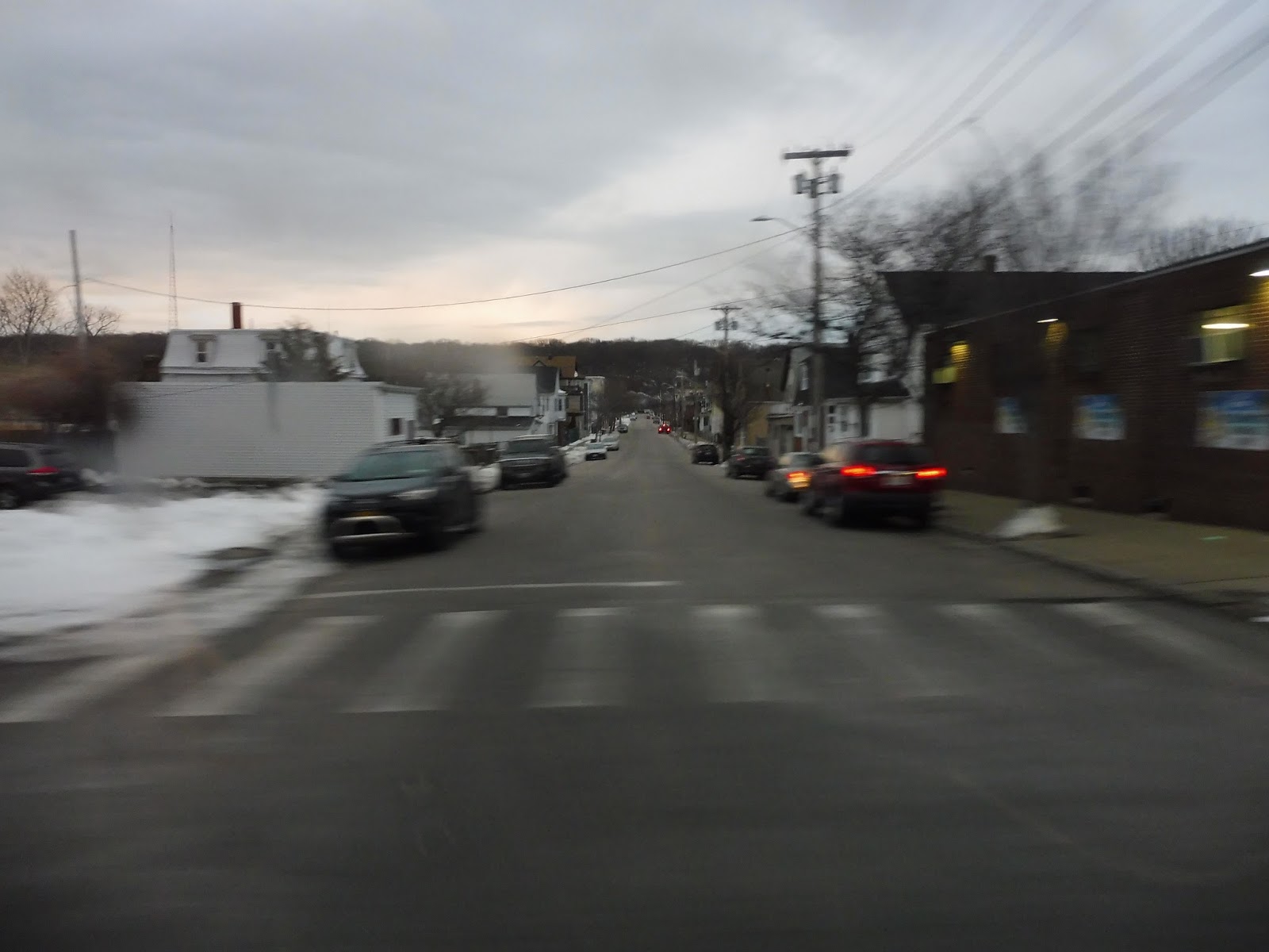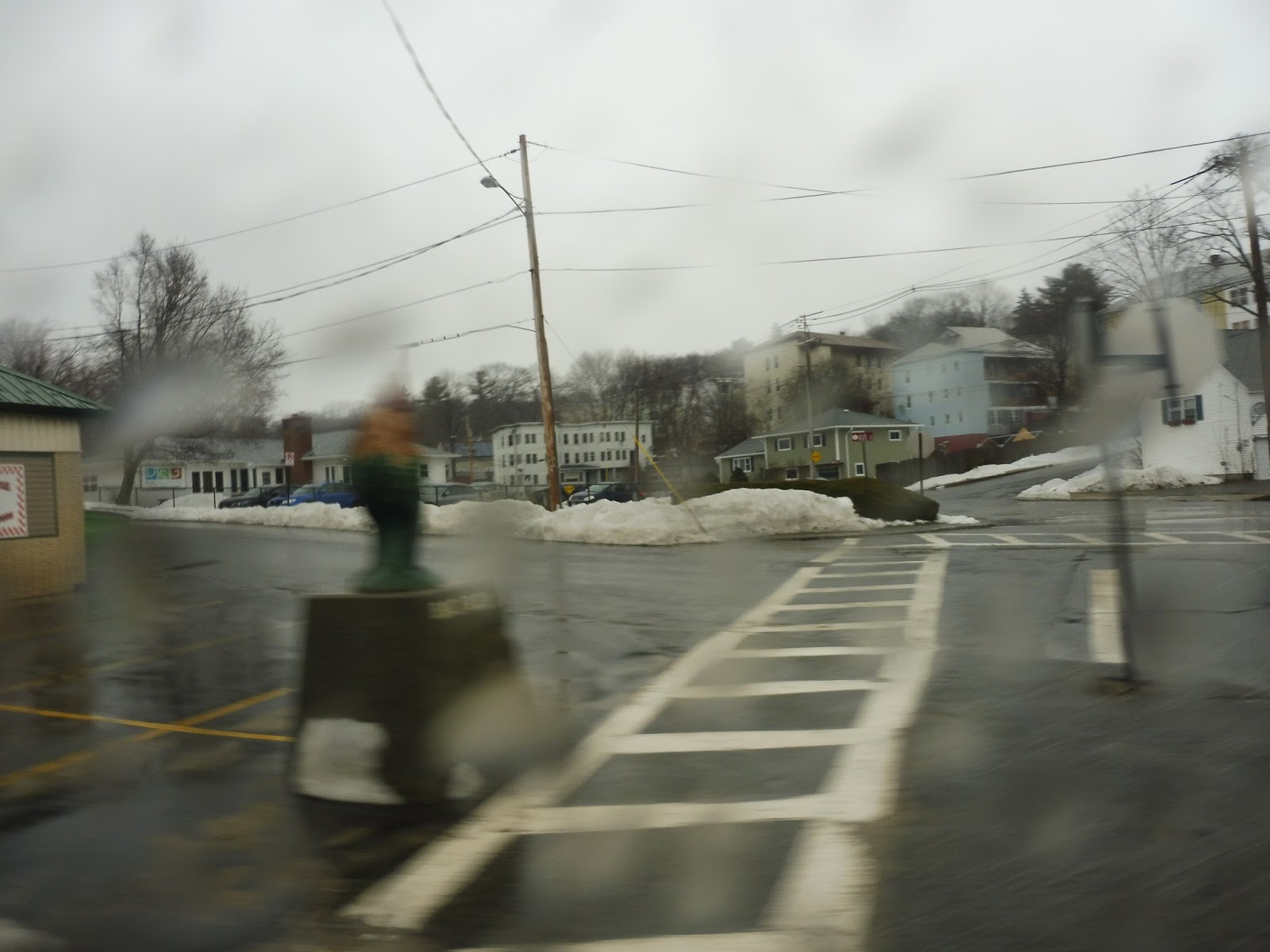 The street was called Baldwinville State Road from there, and we started to see some relatively consistent houses! Eventually the name changed to Main Street and we curved east, passing an ice cream shop and a strange-looking closed car dealership in the middle of a field. There was even some proper civilization in the form of Waterville Plaza! Yes, it was a terrible tiny place with really boring businesses, but it was something.