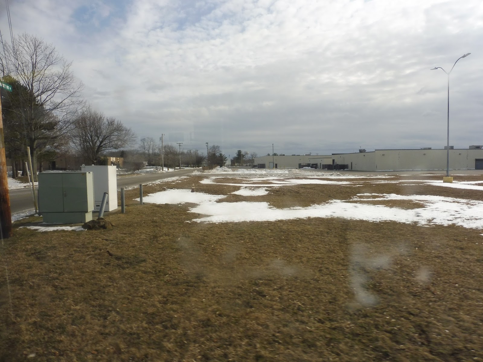We rejoined the outbound route at Prospect Street, then Beverage Hill Ave became mostly residential (aside from one little blip of more industry). After we reached Newport Ave, we made a really strange…deviation, I guess you could call it? The route eventually runs down Newport, but before doing that, we circled a block around the back of a shopping plaza through an industrial area. It really didn’t feel necessary…