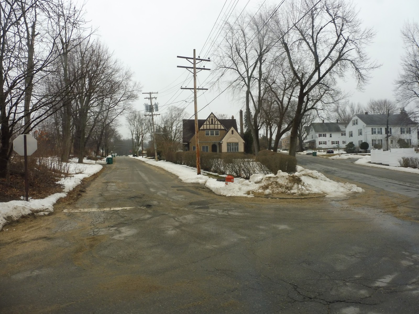 After a bunch of industrial buildings (and a cemetery), we turned onto Armistice Boulevard, taking us into another residential neighborhood. Next, we turned onto North Bend Street for a block, then onto Walcott Street, via an intersection playing host to another church and a catholic school. Beyond there, the street was again residential, with bigger houses than before.