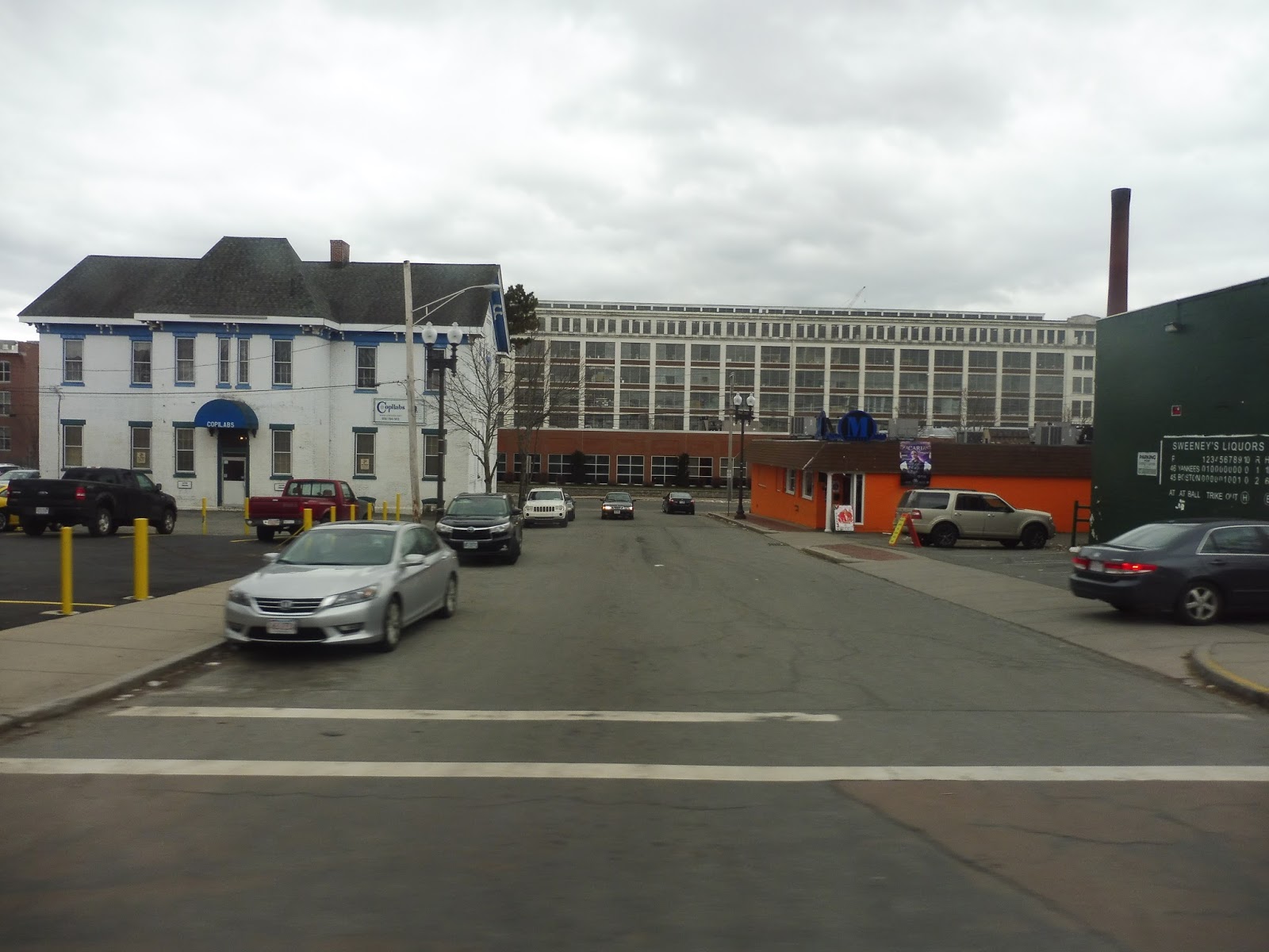We made a quick turn onto Newbury Street for a block, then we turned again onto Garden Street. The street was lined with apartments, but then we passed a huge abandoned factory. Past there, with the road now called General Street, things got a lot more barren, with lots of half-empty parking lots everywhere. After going over the small Spicket River, we pulled into the Lawrence Memorial Hospital.