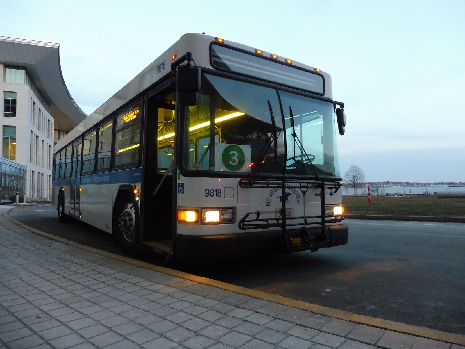 Nathan and I had decided on a whim to ride the UMass shuttles as we were approaching JFK/Umass on a Red Line train. Five minutes later, we were scrambling over barriers in the Umass Bayside Lot trying to catch a 3 laying over at the shelter way on the far end of the lot. Luckily, we made it before the bus left, and we were on board! Mission accomplished.