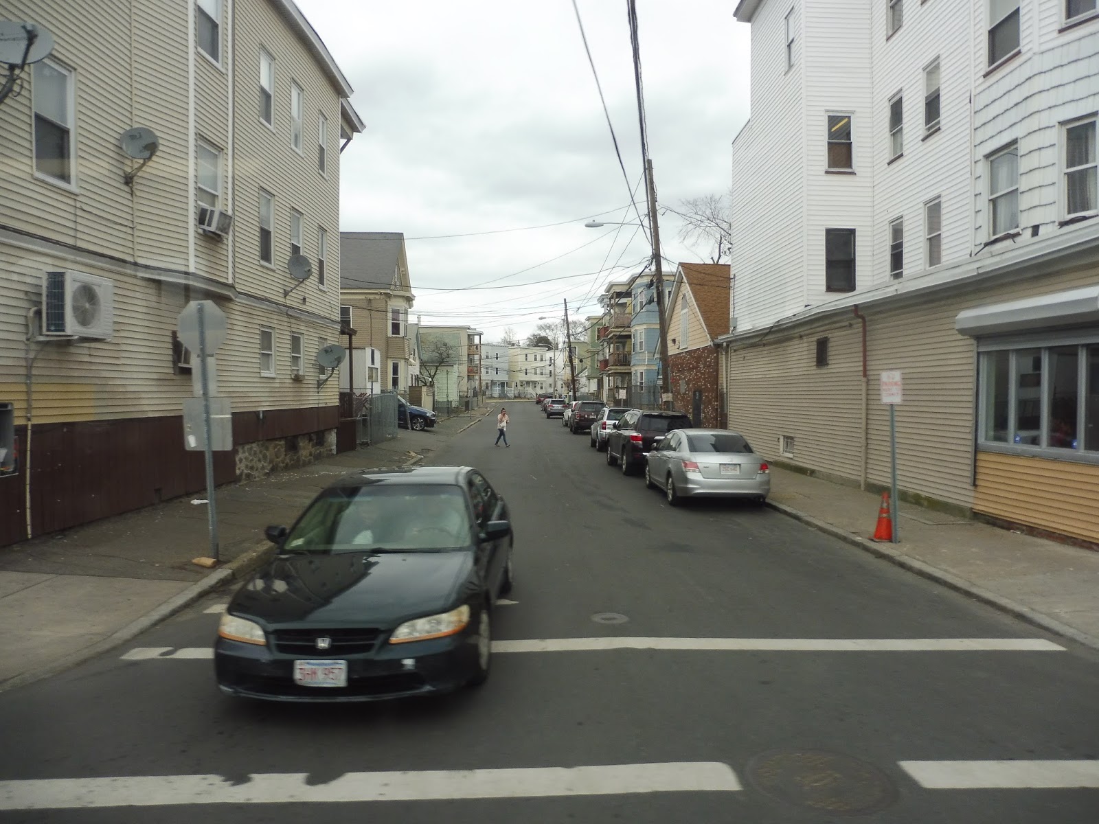 Next, we turned onto Howard Street, whose houses were more dense. After we passed a fire station and a small school, those “houses” became more “apartments”. We soon turned onto Allston Street, going down a rather steep hill. The road ended at Marston Street, where we took a left, going past a lot of car dealerships.