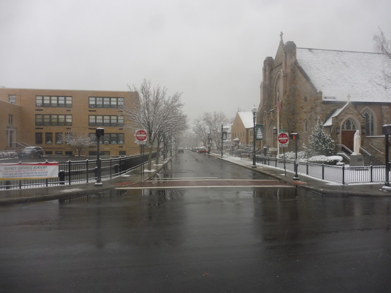We almost made it to the water, but a block before the beach, we turned onto Billings Road. This street continued to be entirely residential, but after it curved in a southwesterly direction, we did go by a small elementary school. Eventually the street became lined with businesses as we turned onto Hancock Street. This took us to North Quincy, where the ridiculously short ride was over.