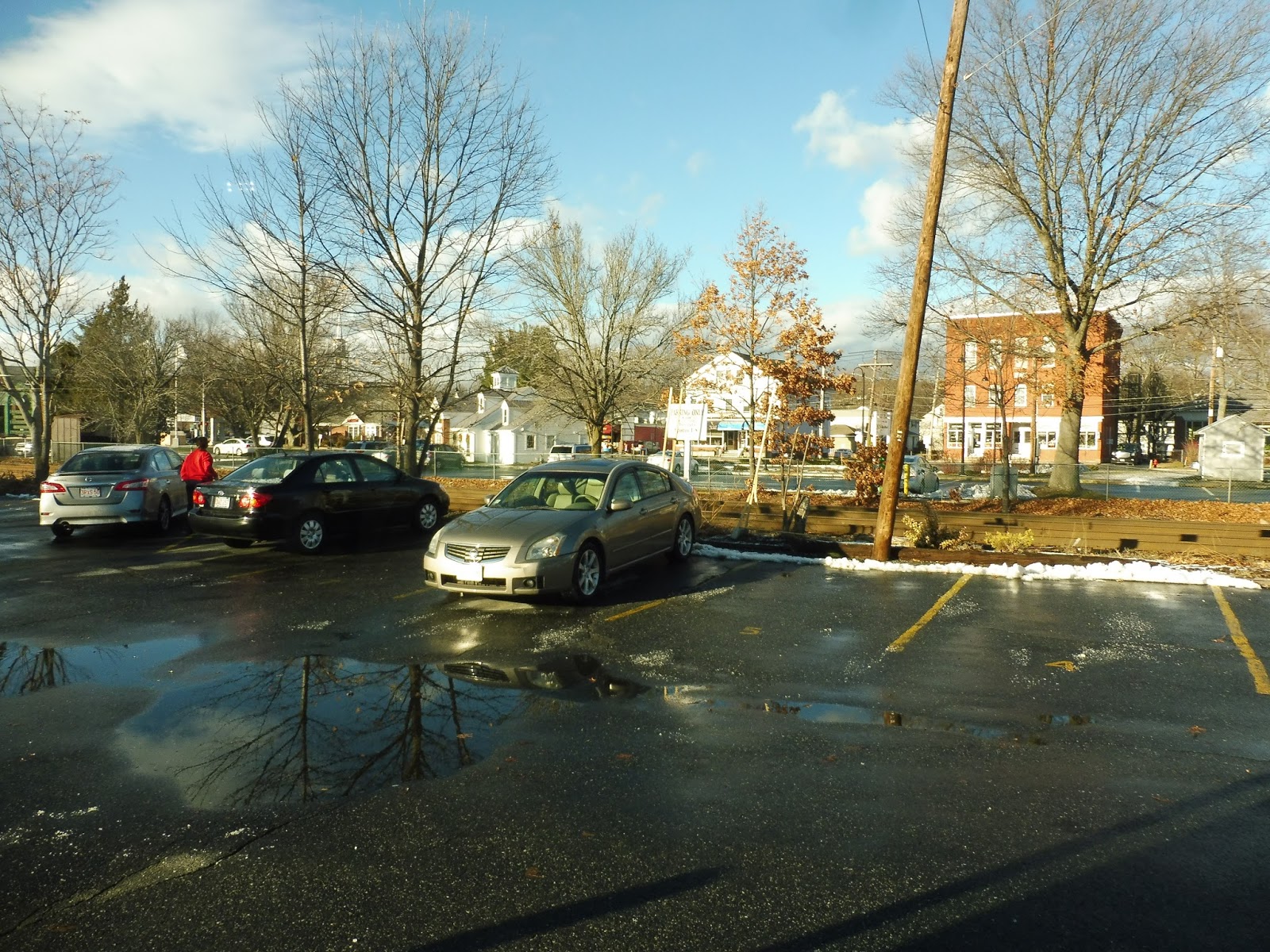 It got woodsy past there, with spaced-out suburban housing. We passed some residential developments, then suburban businesses, including a huge shopping plaza – surprisingly, we didn’t deviate, despite the fact that the parking lot rendered it pretty far from the road. Beyond that point, we merged onto the smaller Railroad Street, taking us below North Main.