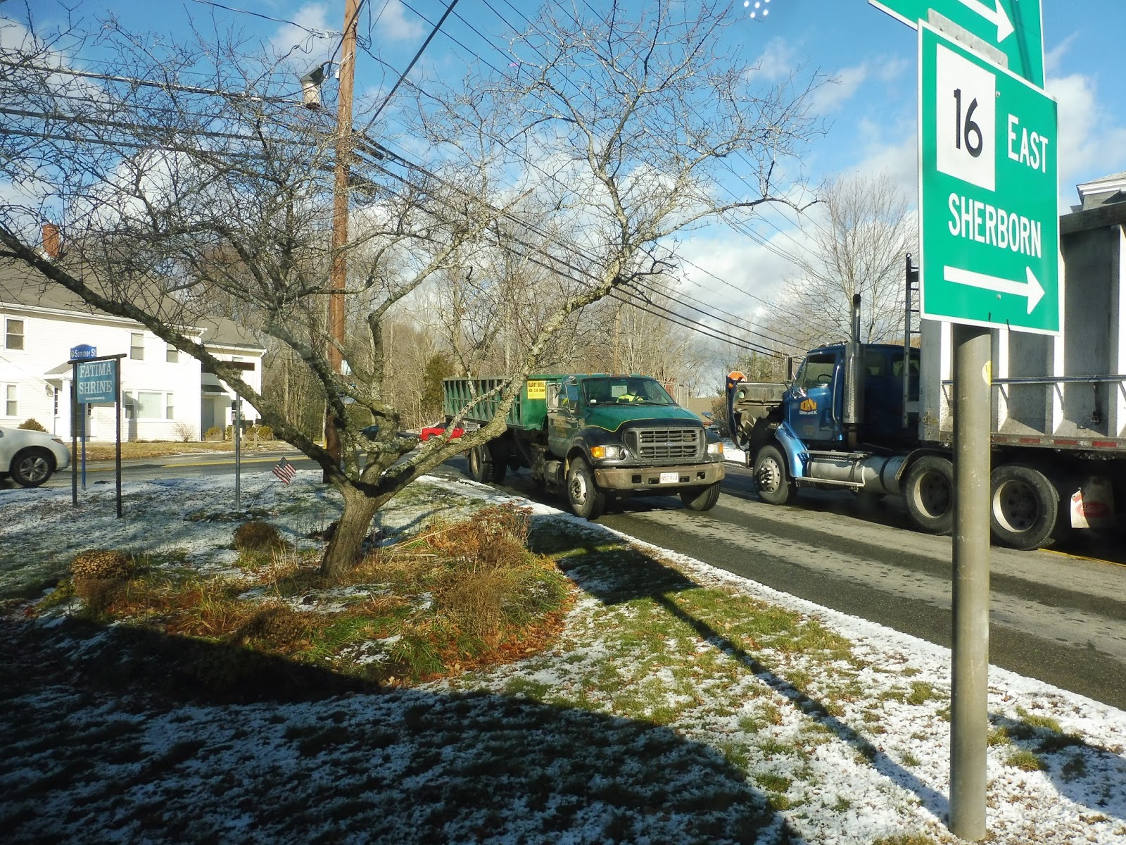 Now in Ashland, we passed some more houses, then a shopping plaza. It had a good amount of stores. but the timepoint is just referred to as “Market Basket”. There was a brief section of woods, then some businesses and industrial buildings. We also went by the entrance to a gigantic housing development.