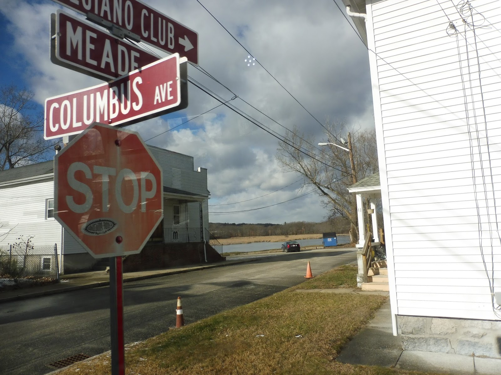Travelling down Eliot Street, with a 66 in the background. Thanks, rear window! |