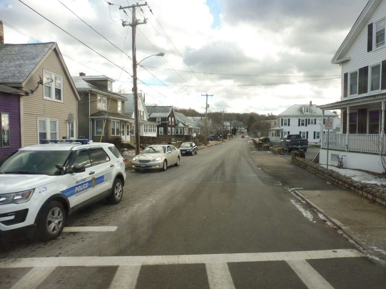 We left the Blandin Hub onto Blandin Ave, then turned onto Waverly Street, running alongside the Commuter Rail tracks. It was pretty industrial until we reached Concord Street, which is the main drag of downtown Framingham – there were some businesses here. We continued down Waverly Street for a bit in order to serve Framingham Station, then we turned onto Cedar Street, then Claflin Street.